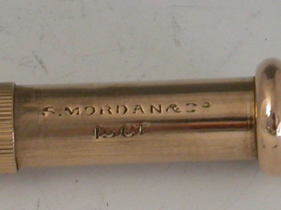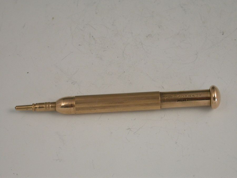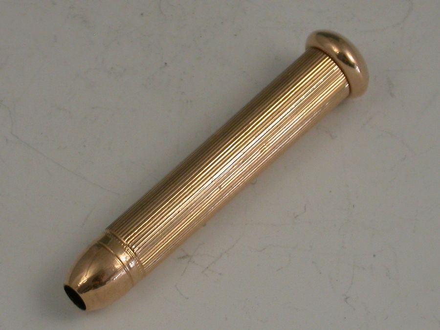 An early 20th century 15 carat gold novelty telescopic Pencil, made in the form of a .22 Caliber Bullet.