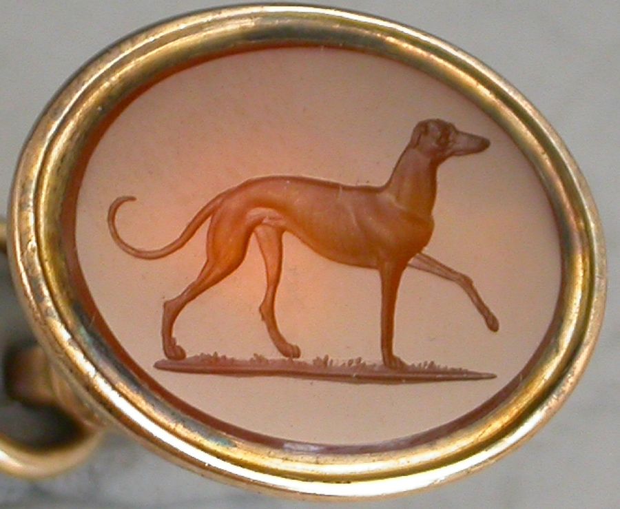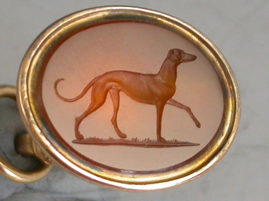 18th Century Adam Style Gold Fob Seal 'Greyhound' Crest