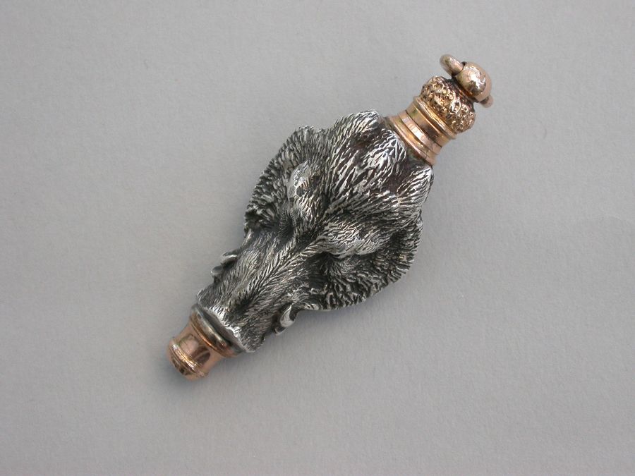 An extremely fine quality heavy cast silver and gold novelty telescopic Propelling Pencil made in the form of a wild Boar's head. The pencil with dual opening mechanisms, the handle pulling out and then twisting to extend the pencil itself.