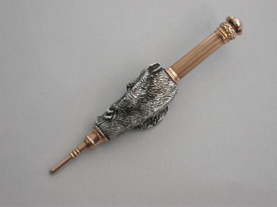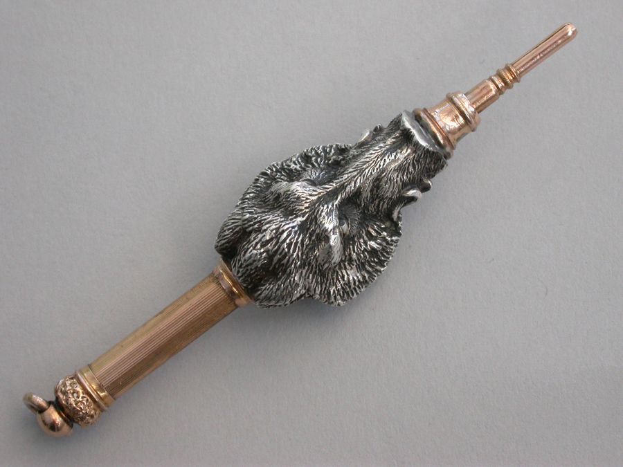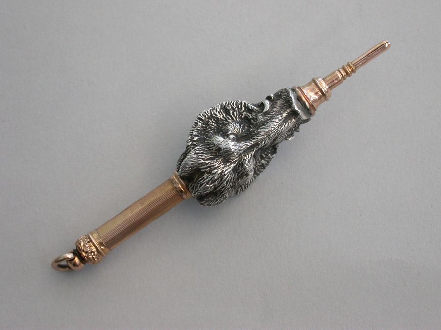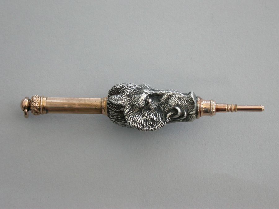 19th Century American Cast Silver & Gold Novelty 'Boar's Head' Propelling Pencil