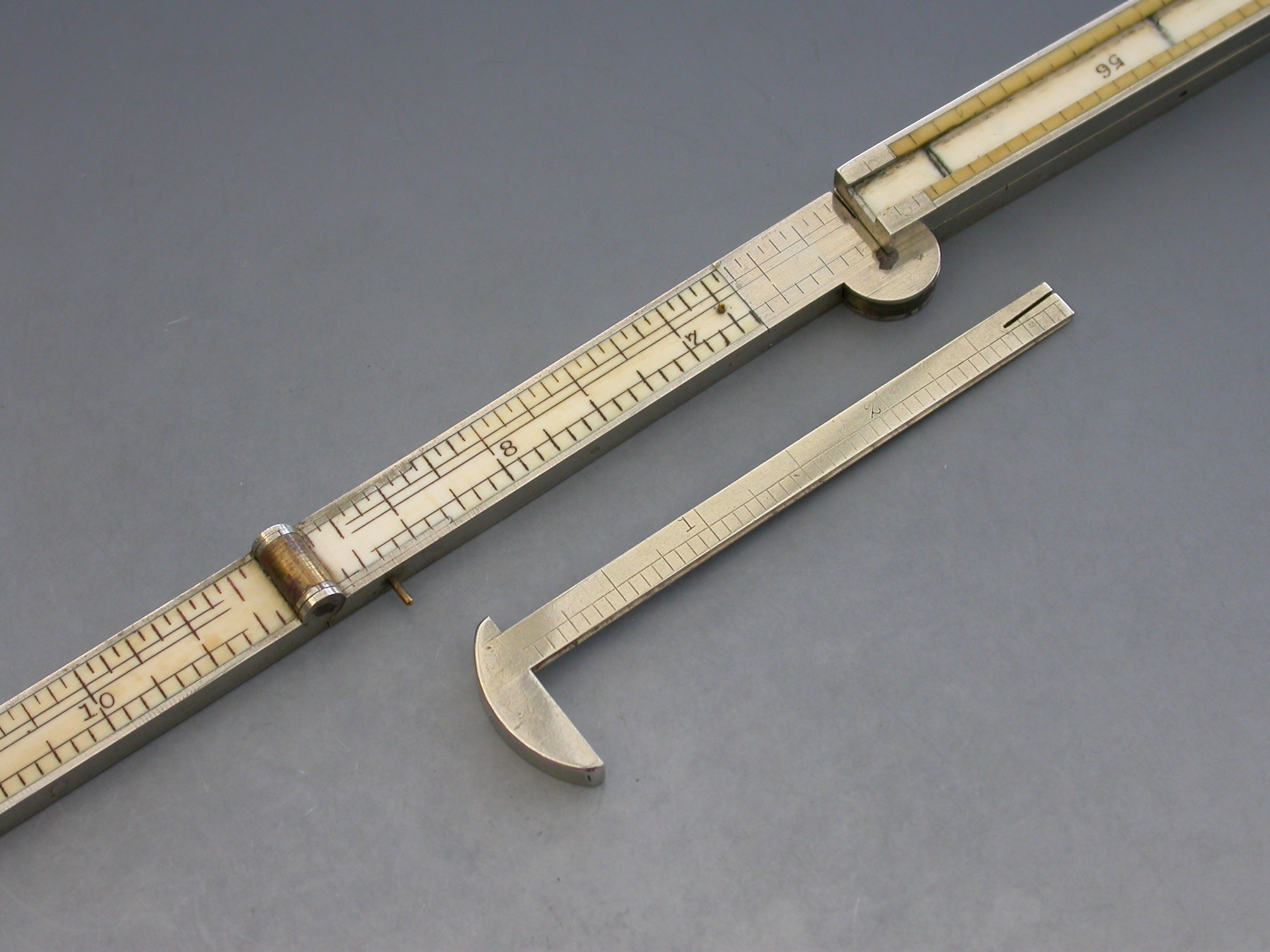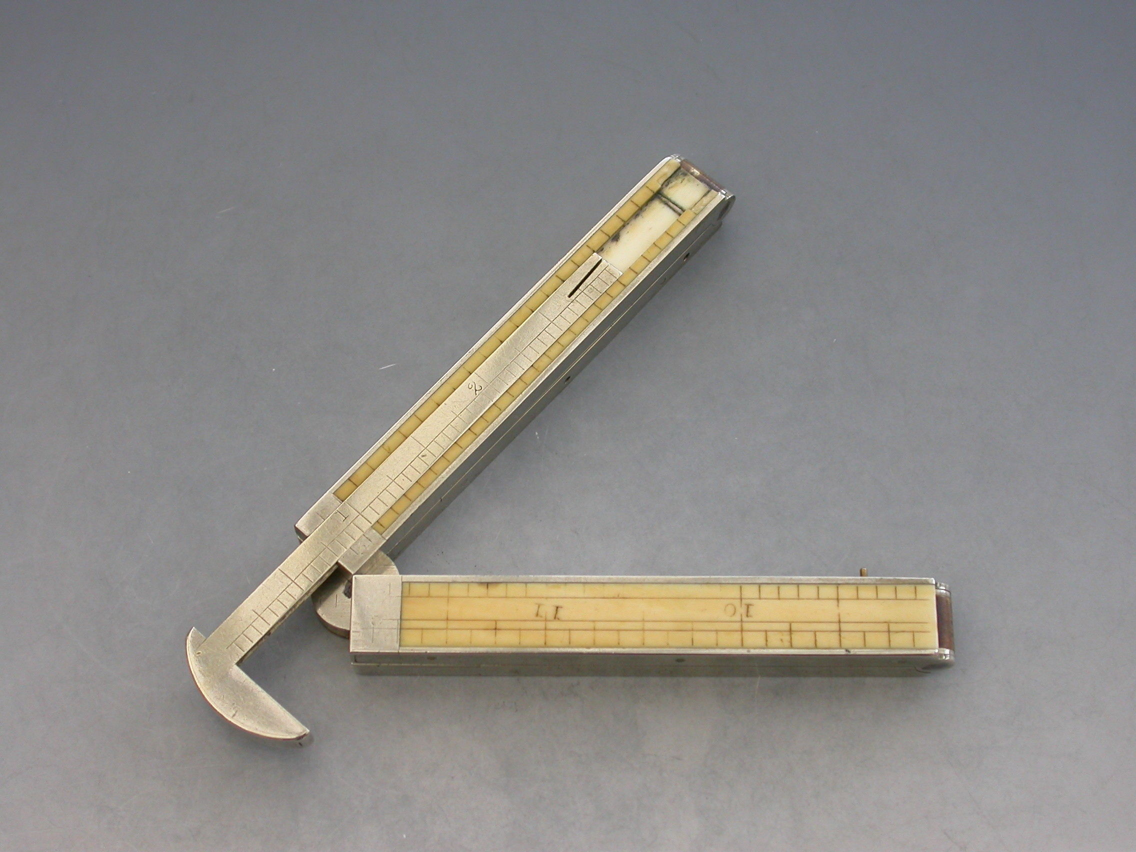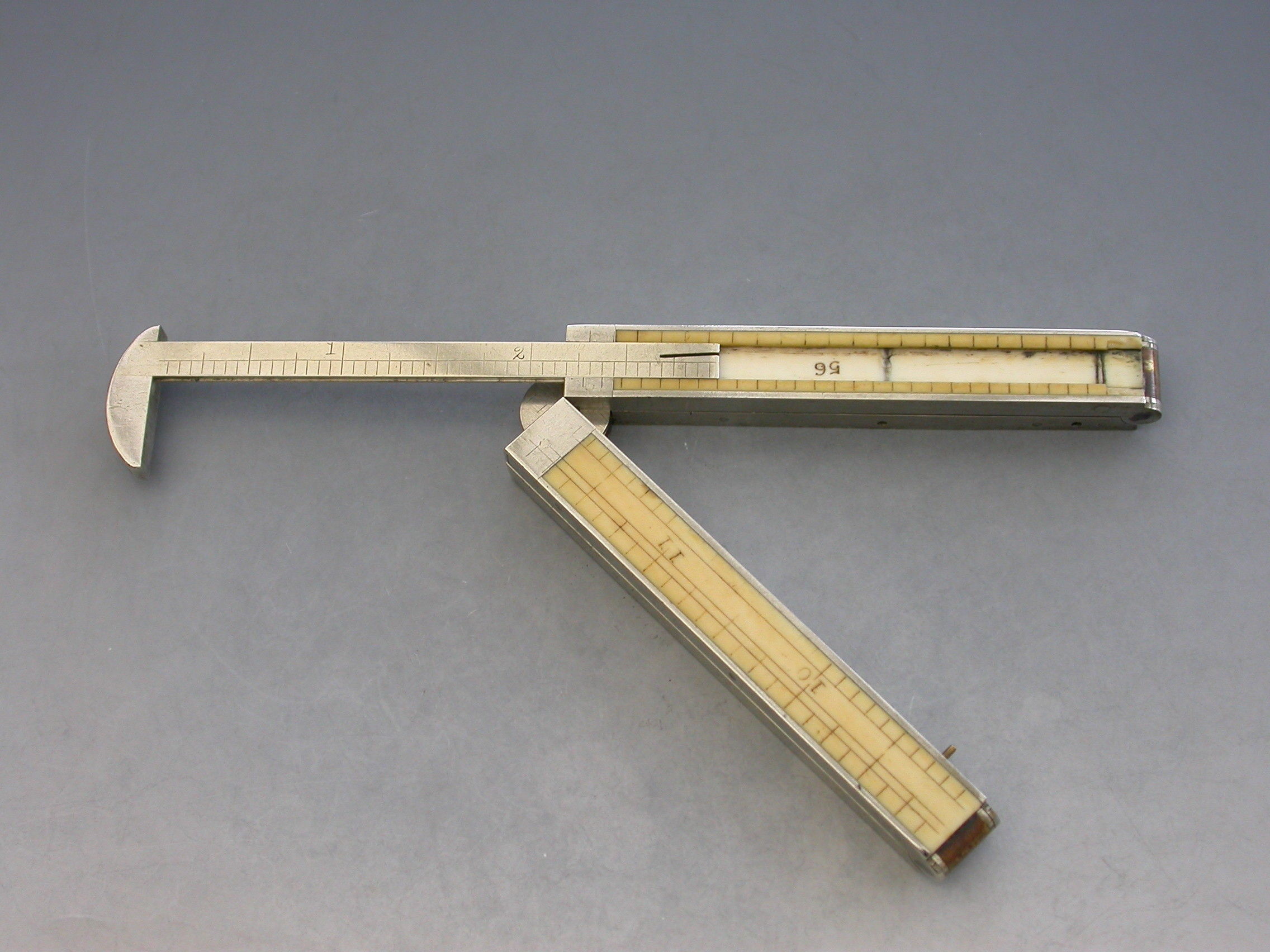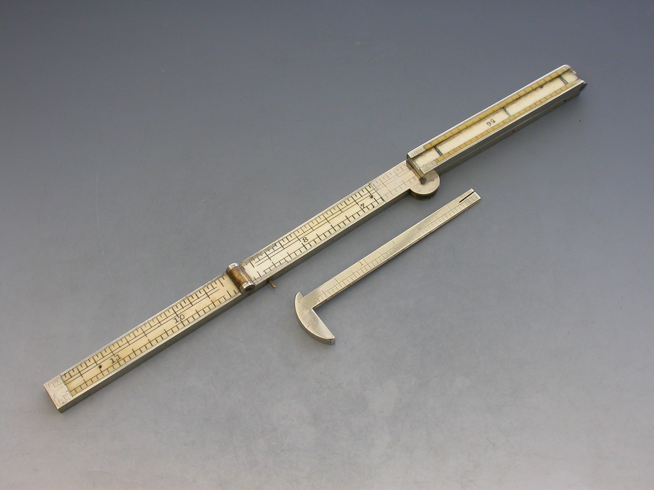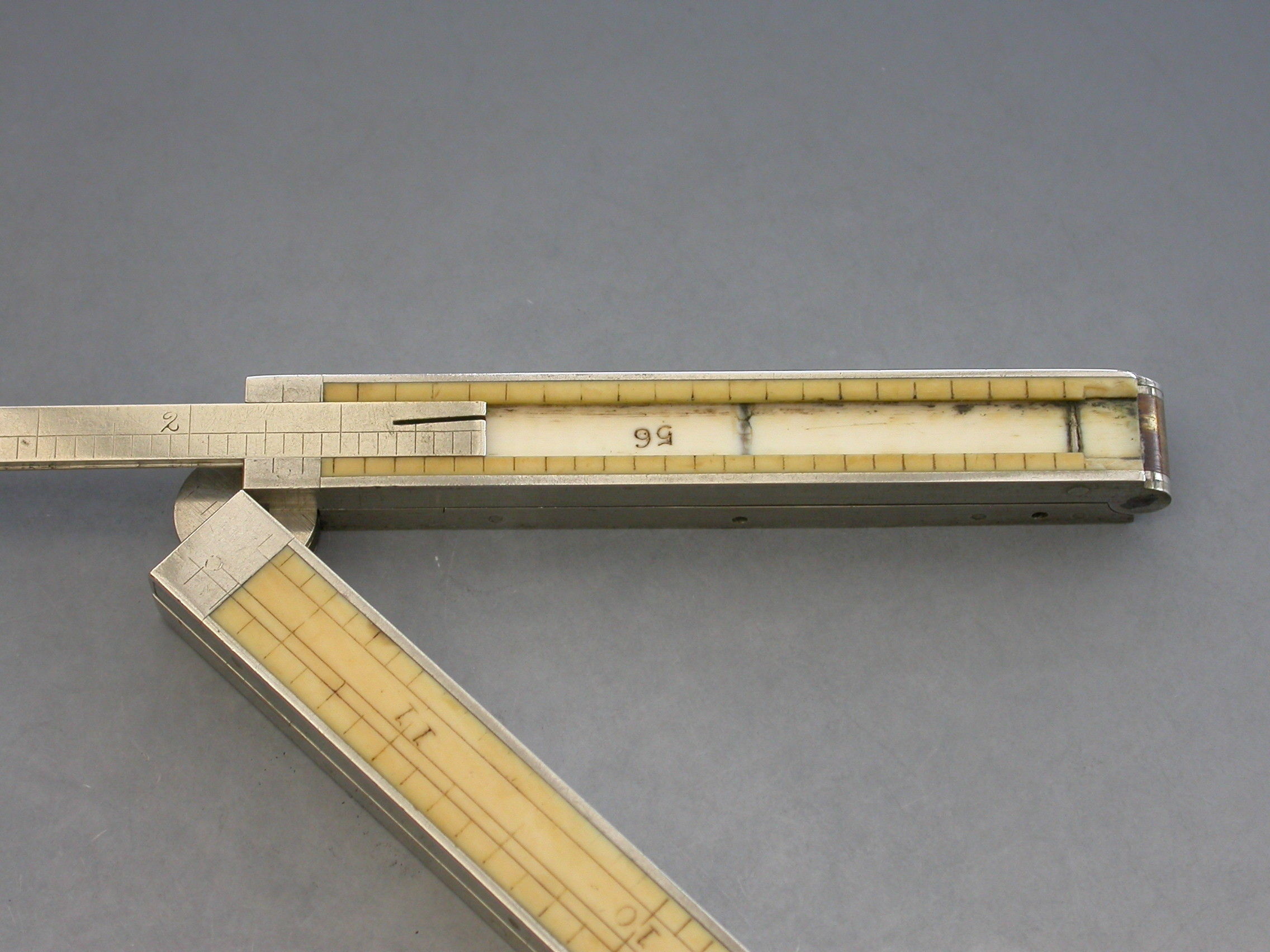 A late 19th century American German silver (alloy) mounted ivory 12 inch Folding Rule, complete with slide out Caliper.