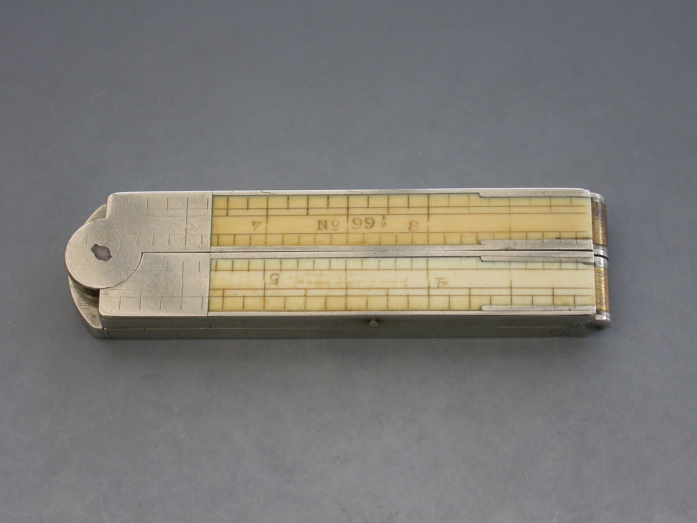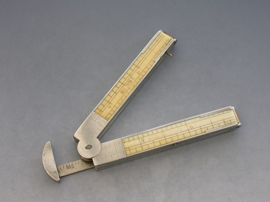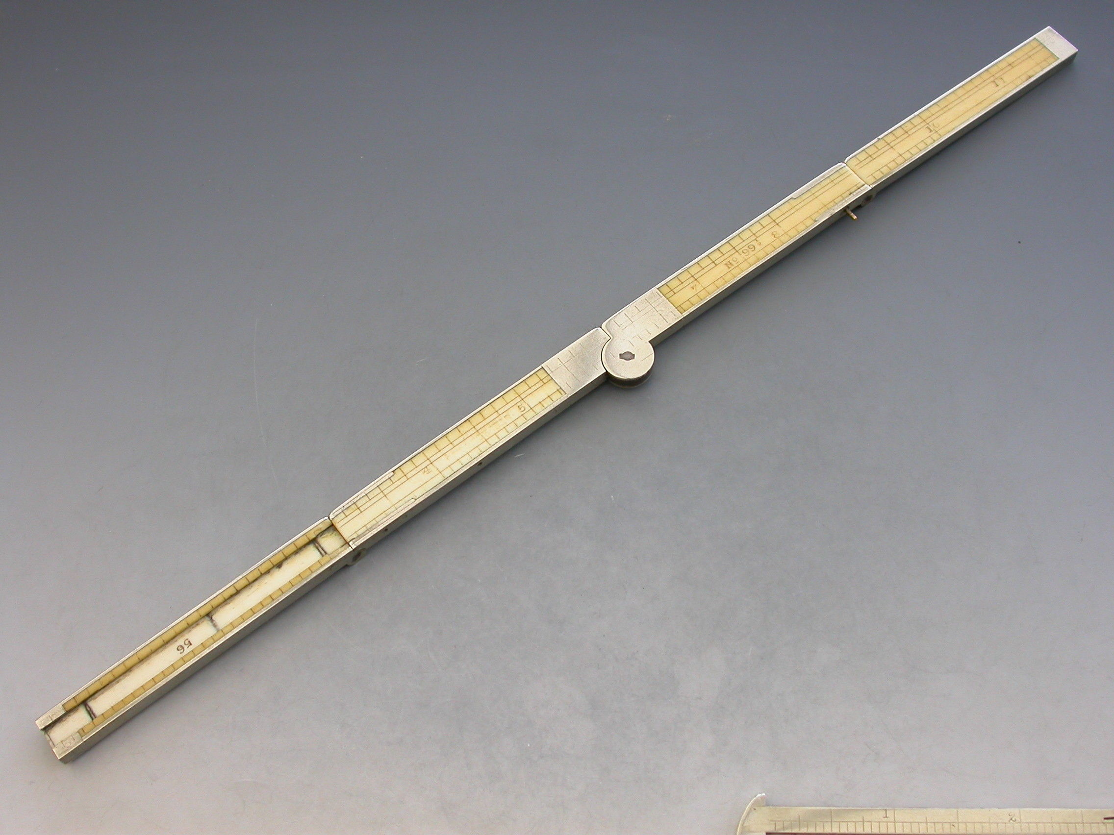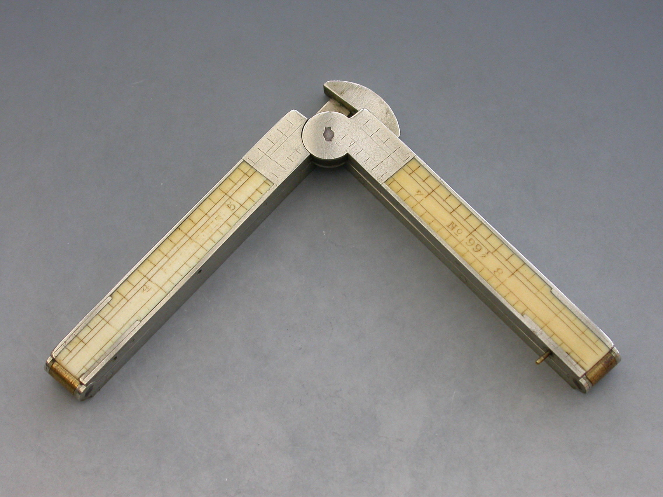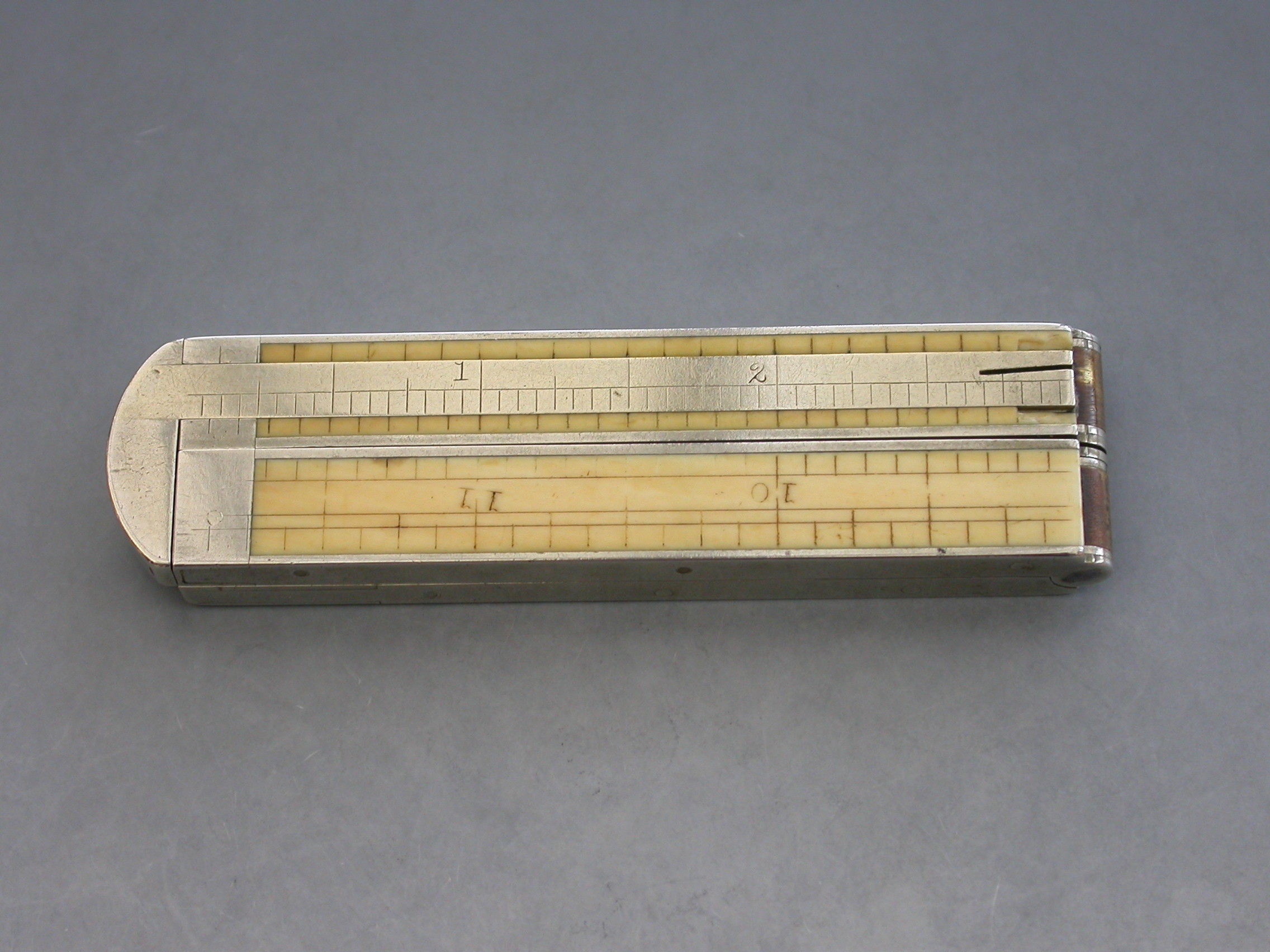 A late 19th century American German silver (alloy) mounted ivory 12 inch Folding Rule, complete with slide out Caliper.