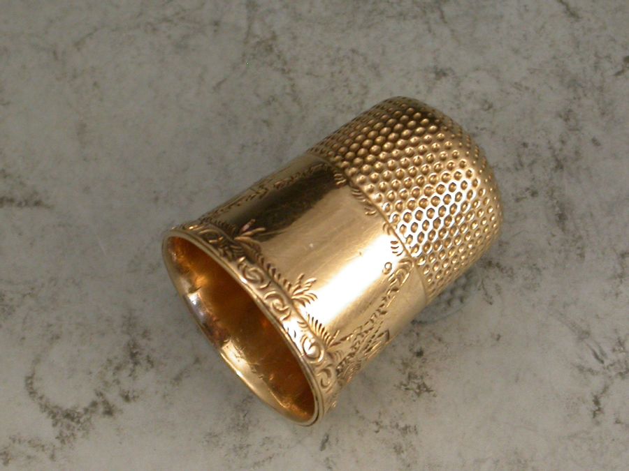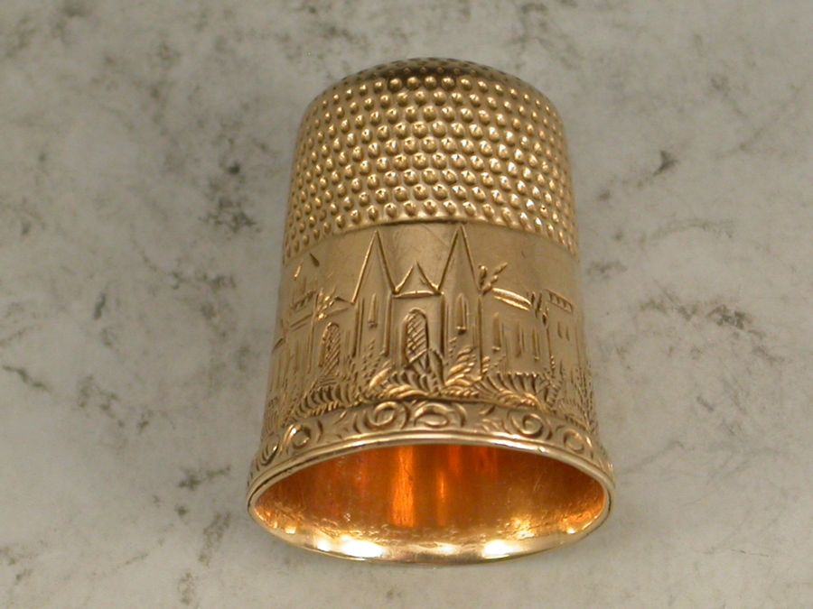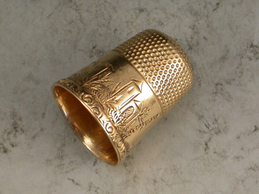 19th Century Cased Continental Gold Thimble - Engraved Landscape Scene