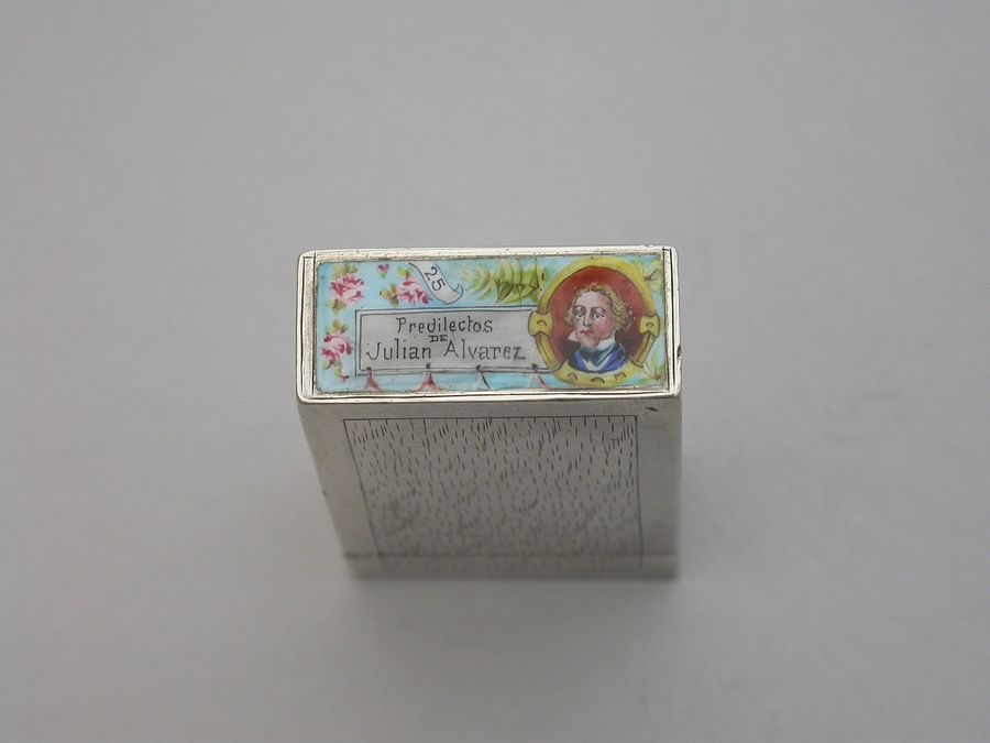 19th Century German Novelty Silver & Enamel Cigar Box Vesta Case