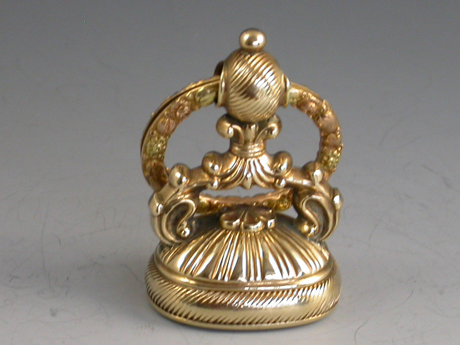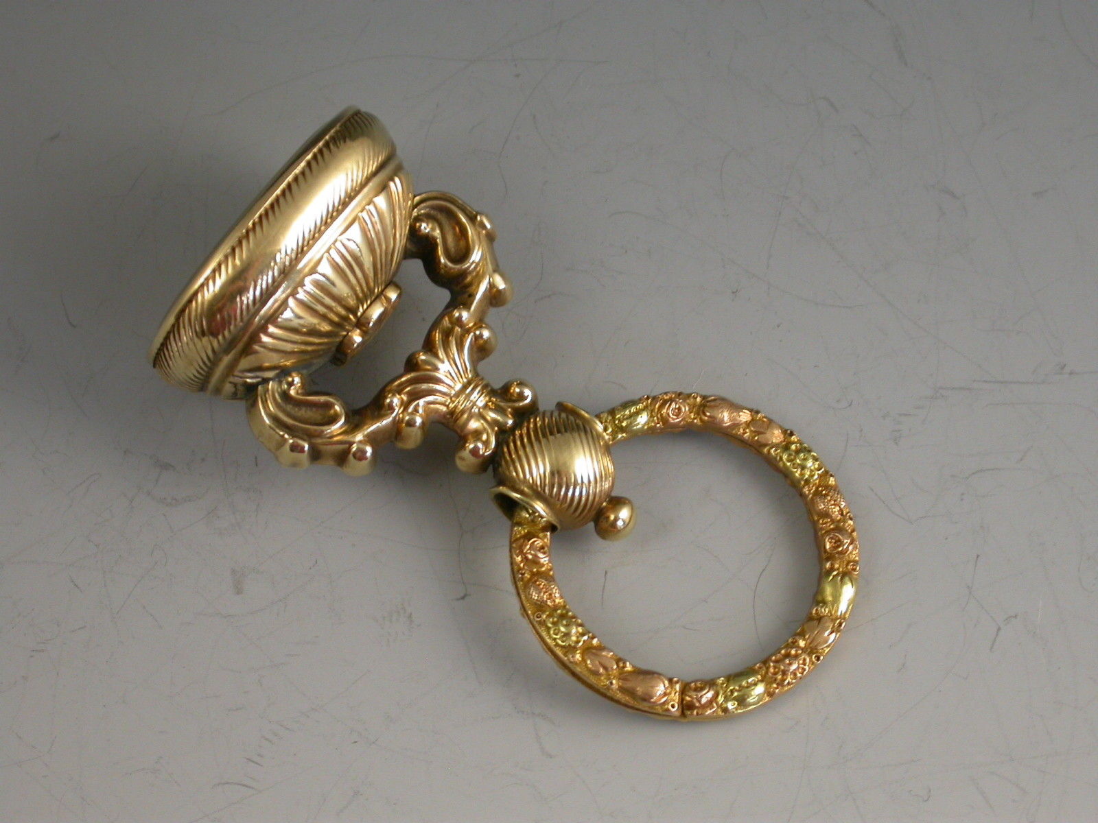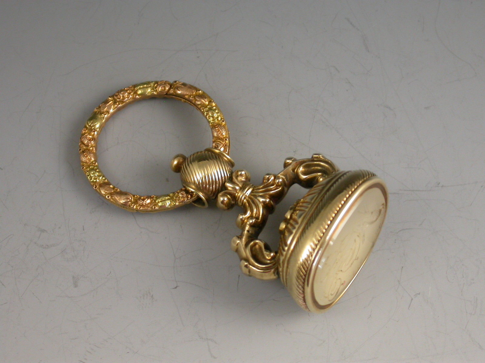 19th Century Gold Fob Seal with 2 coloured Gold Split Ring