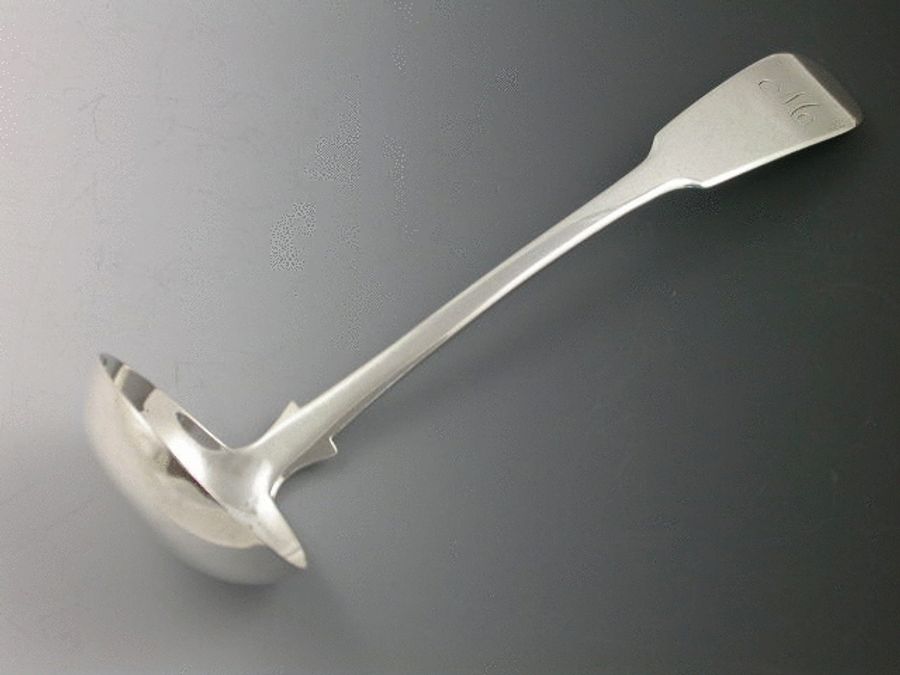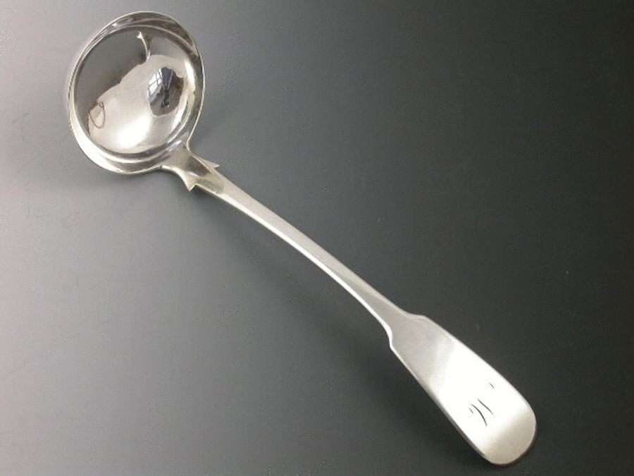 A rare early 19th century Scottish Provincial silver Toddy Ladle of Fiddle pattern. Engraved initial M to handle.