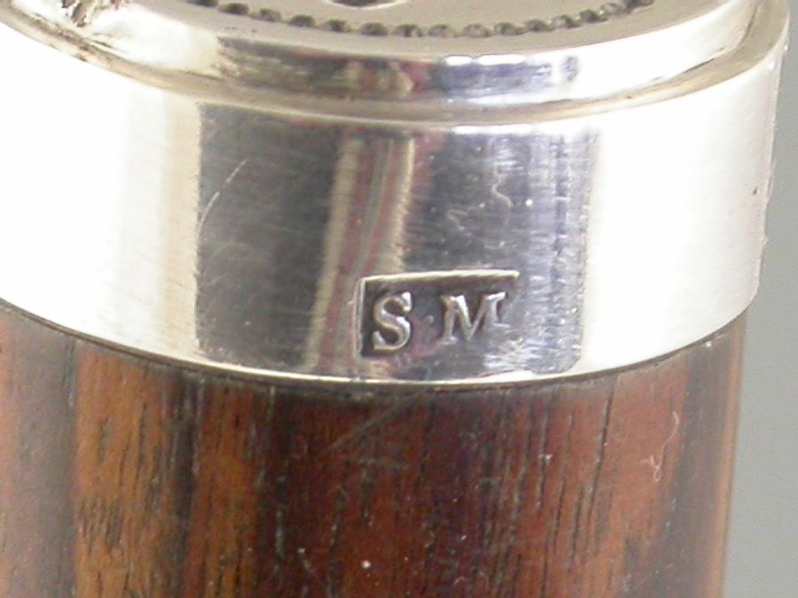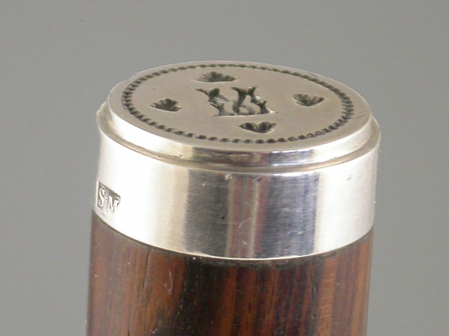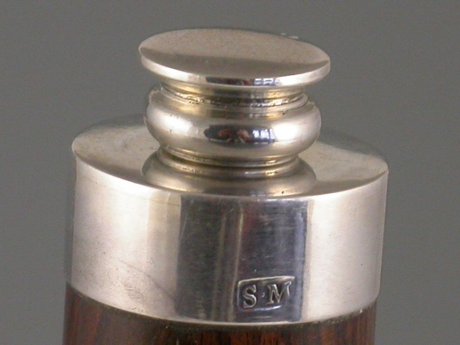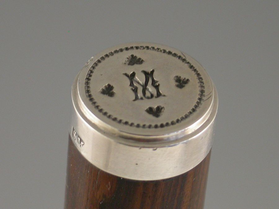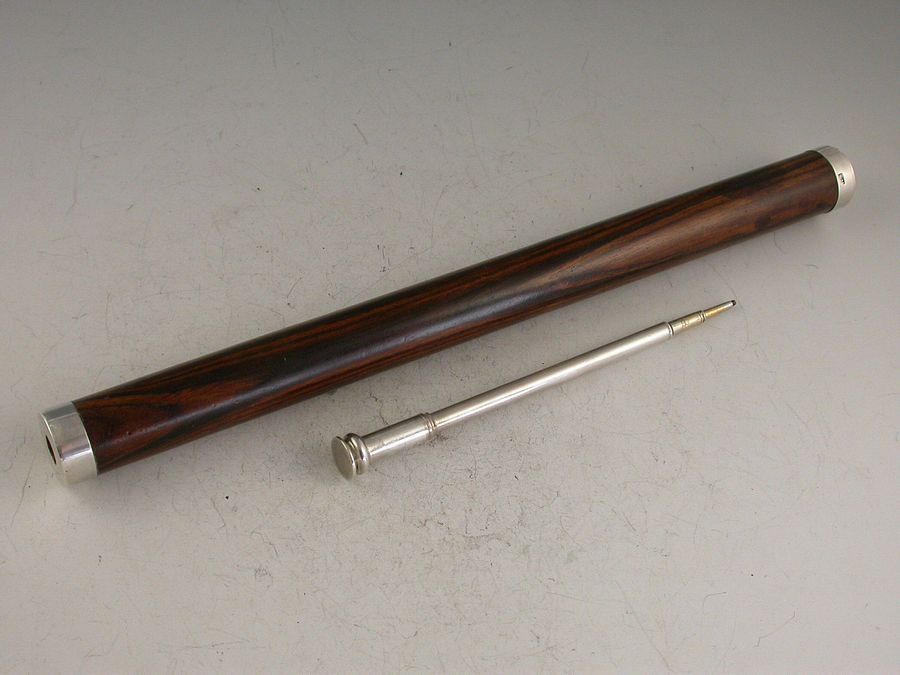 An unusual 19th century silver mounted Lignum Vitae Ruler, mounted on one end with a Seal and on the other end with a collar and a pull out Propelling Pencil.