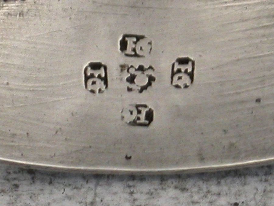 Makers mark IG (?) struck four times surrounding an additional unidentified mark. Possibly Scottish Provincial c1820. Possibly John Glenny of Montrose.