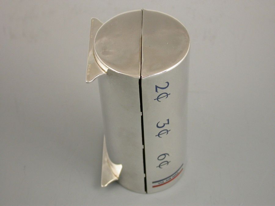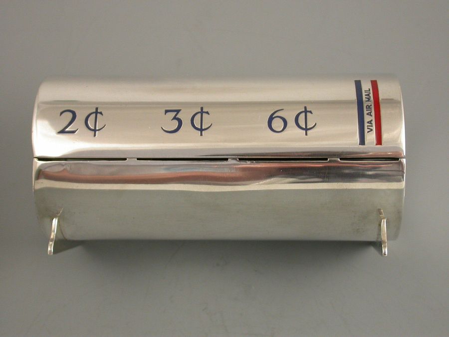 American Sterling Silver & Enamel 4 Compartment Stamp Roll Dispenser 'Airmail'