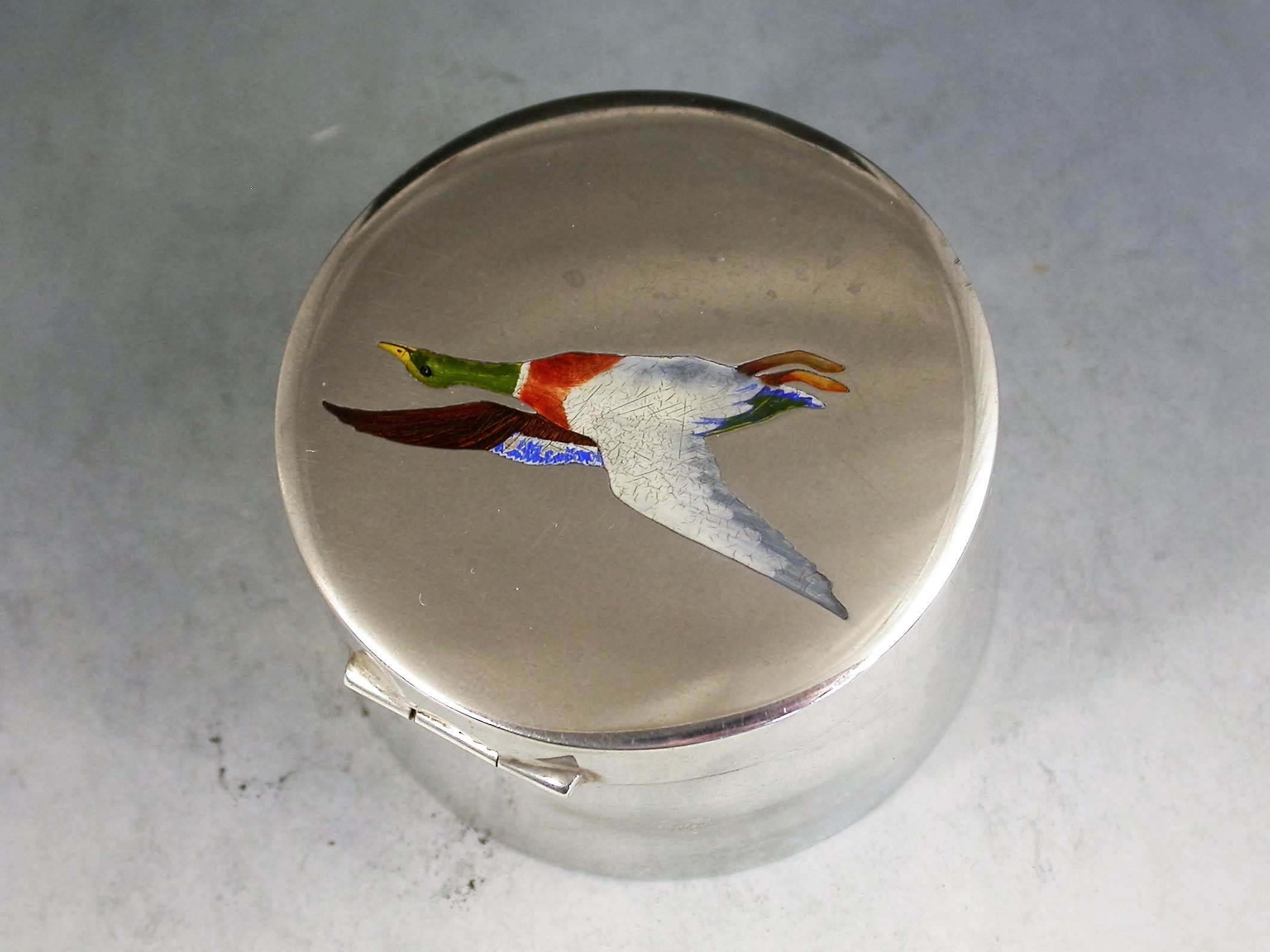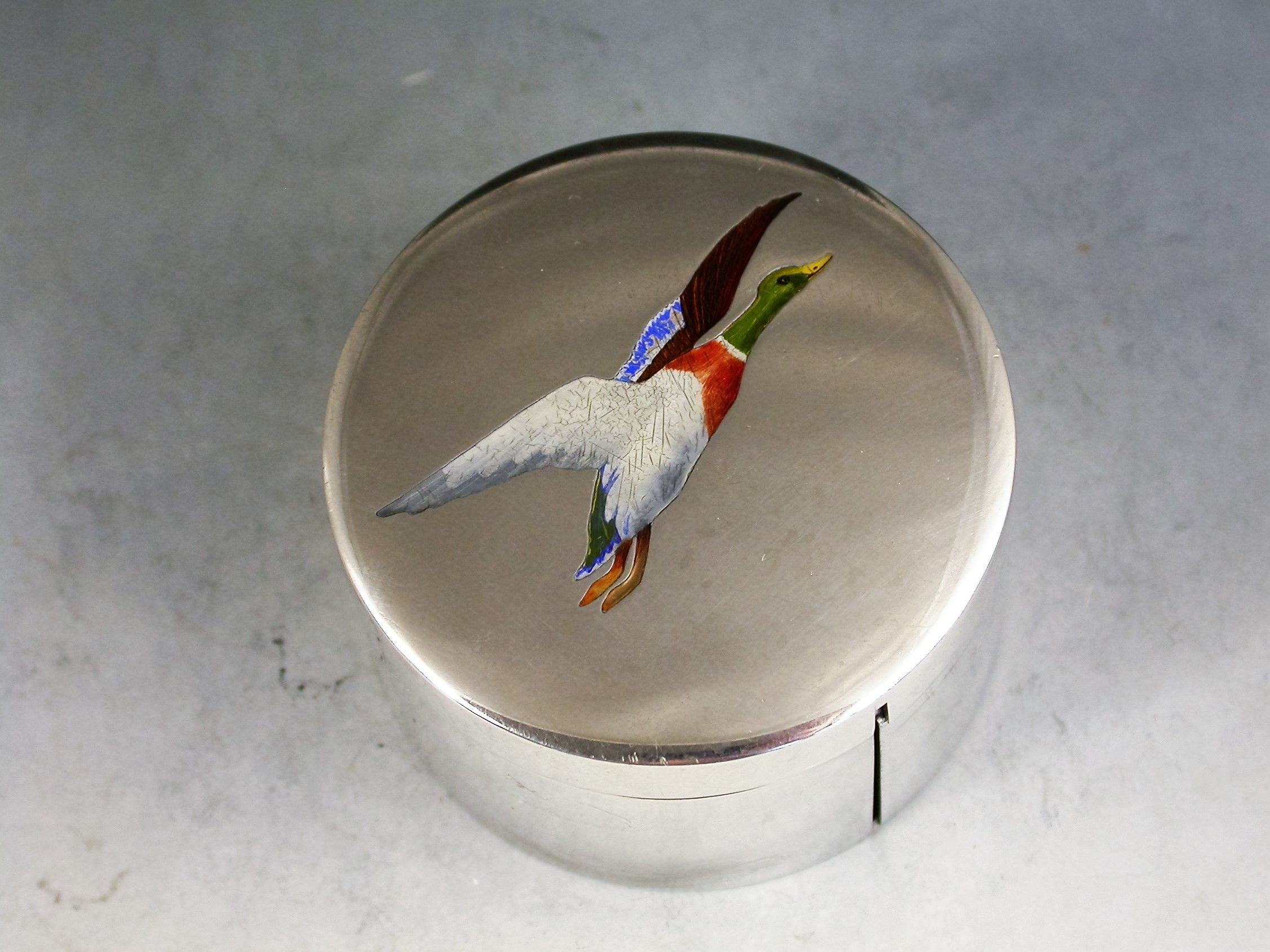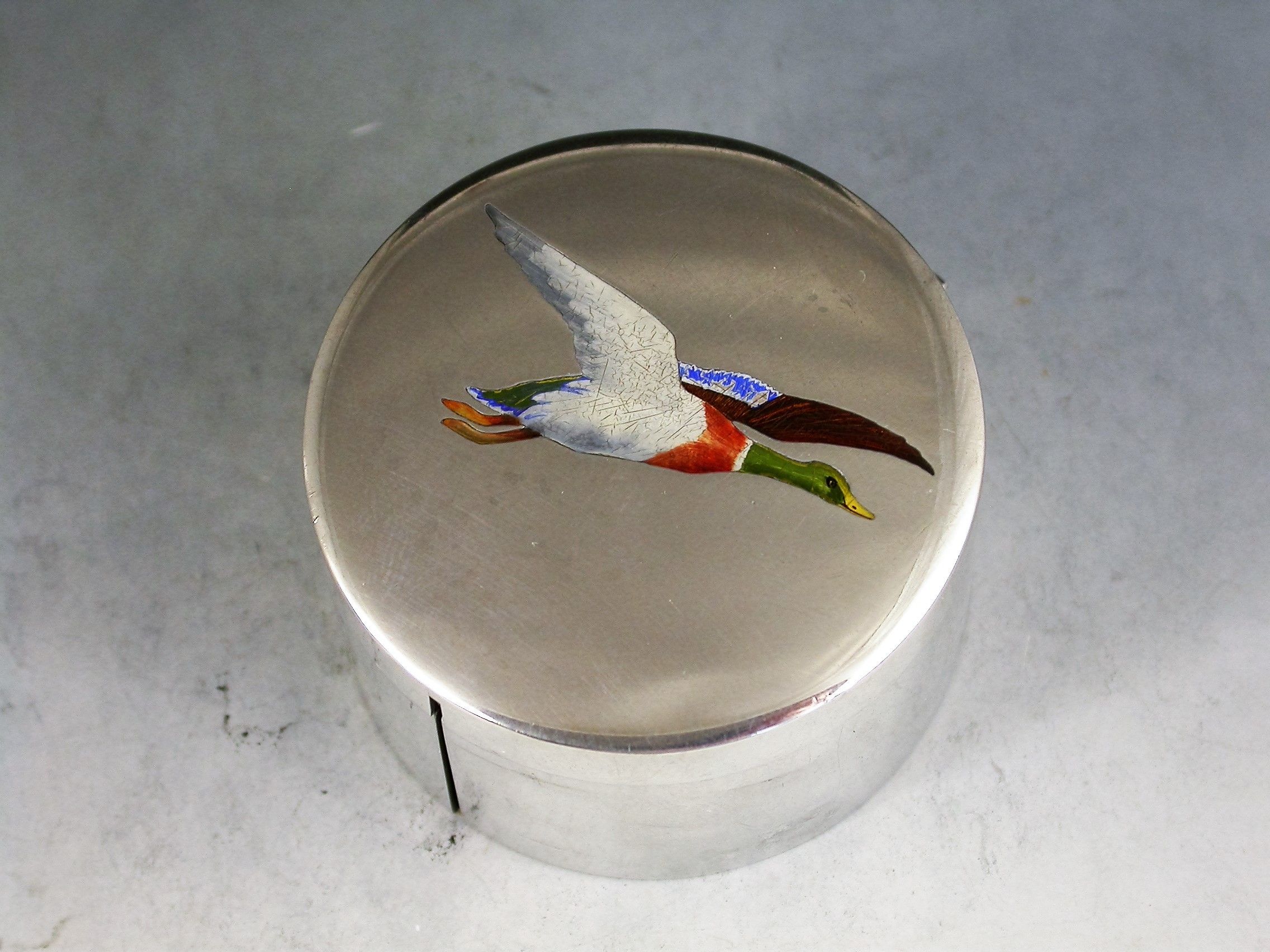 American Sterling Silver & Enamel 'Mallard' Stamp Box