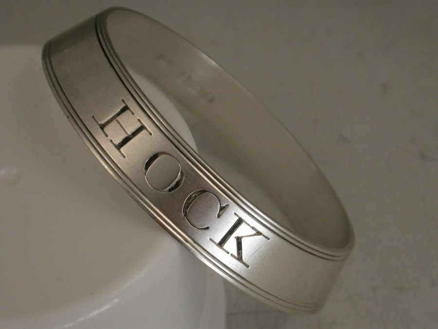 Antique Silver Bottle Collar Wine Label 'Hock'