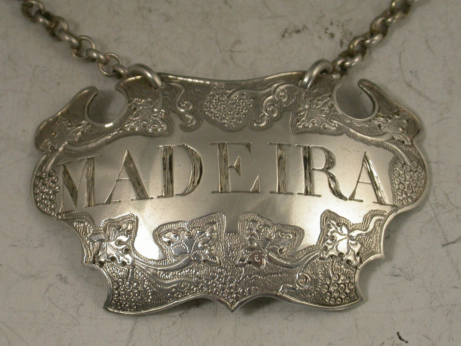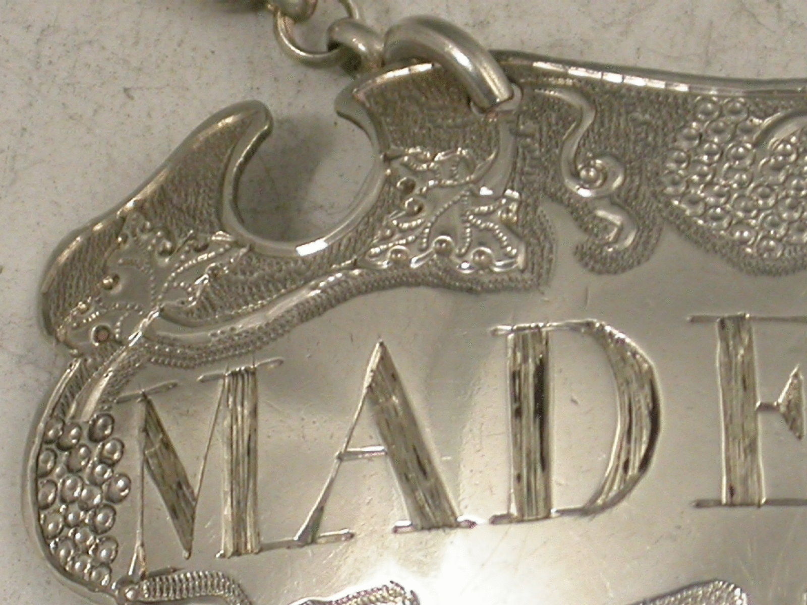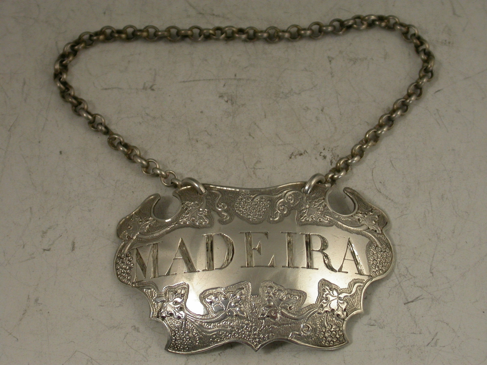 Antique Silver Flat Chased Escutcheon Wine Label 'Madeira'