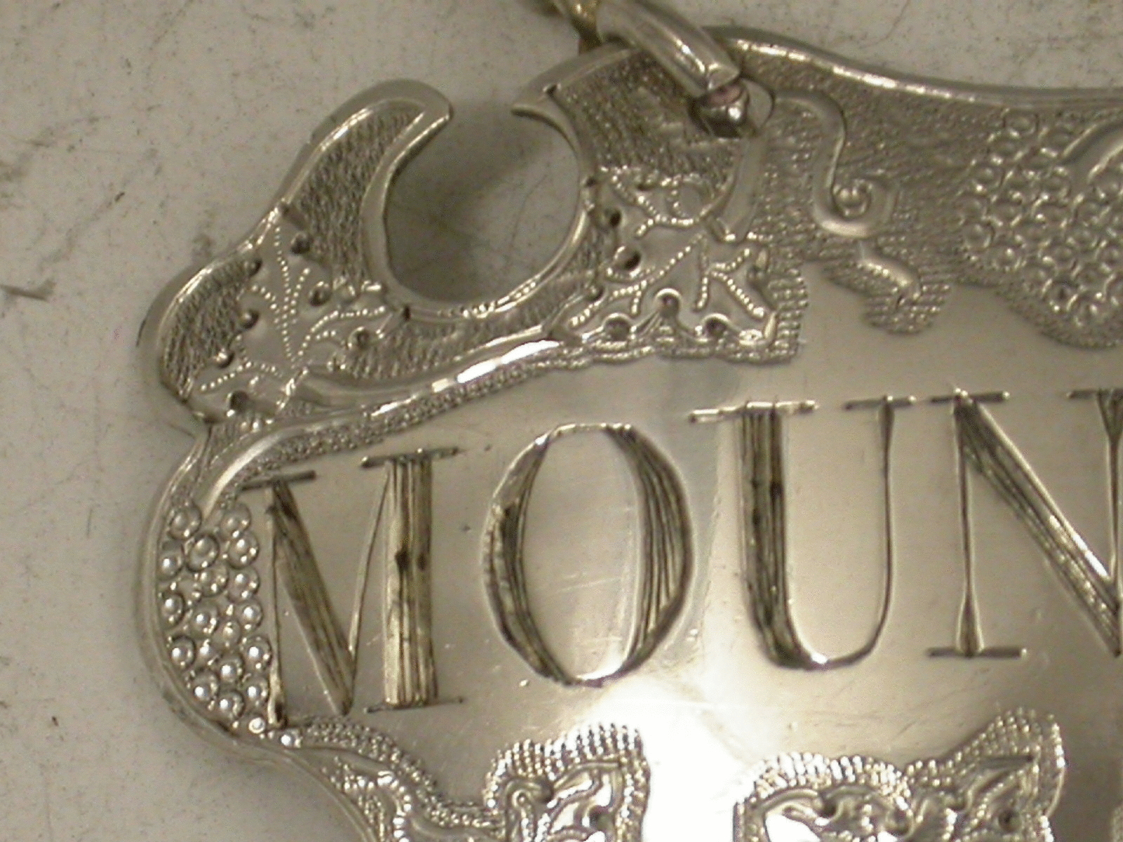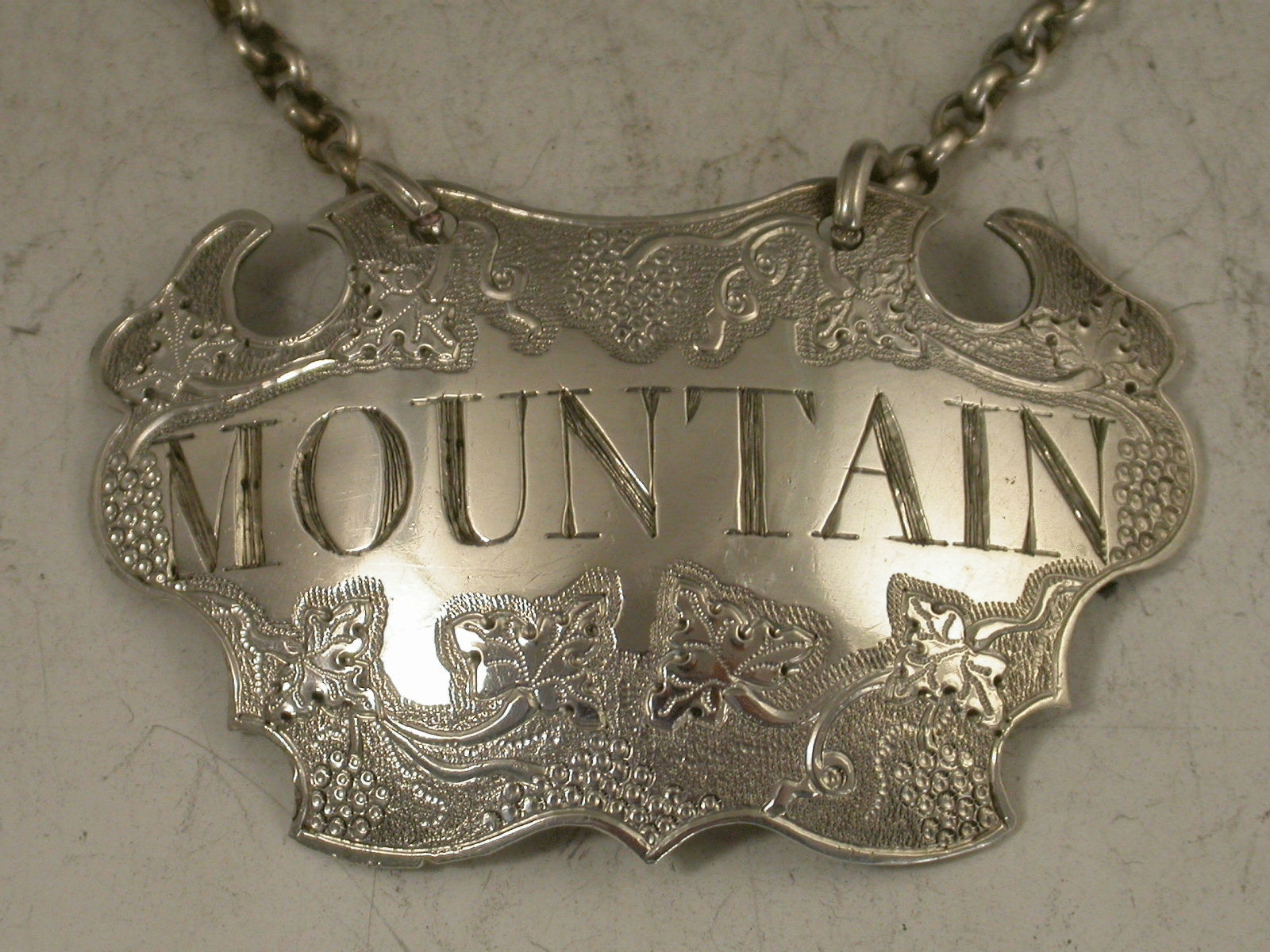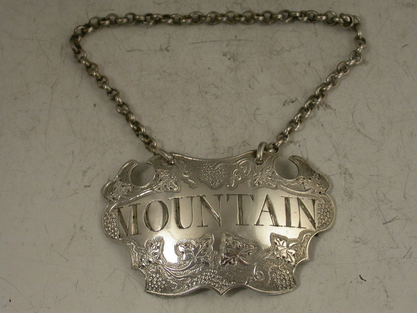 Antique Silver Flat Chased Escutcheon Wine Label 'Mountain'