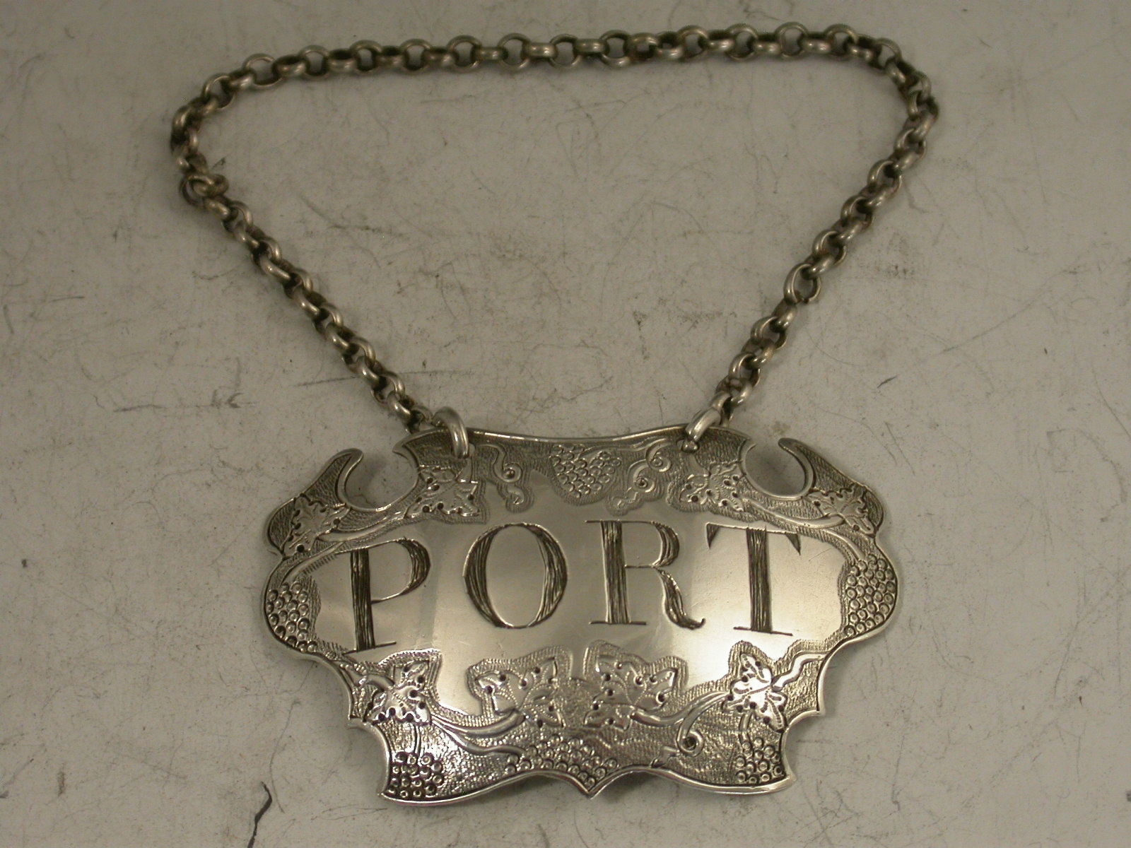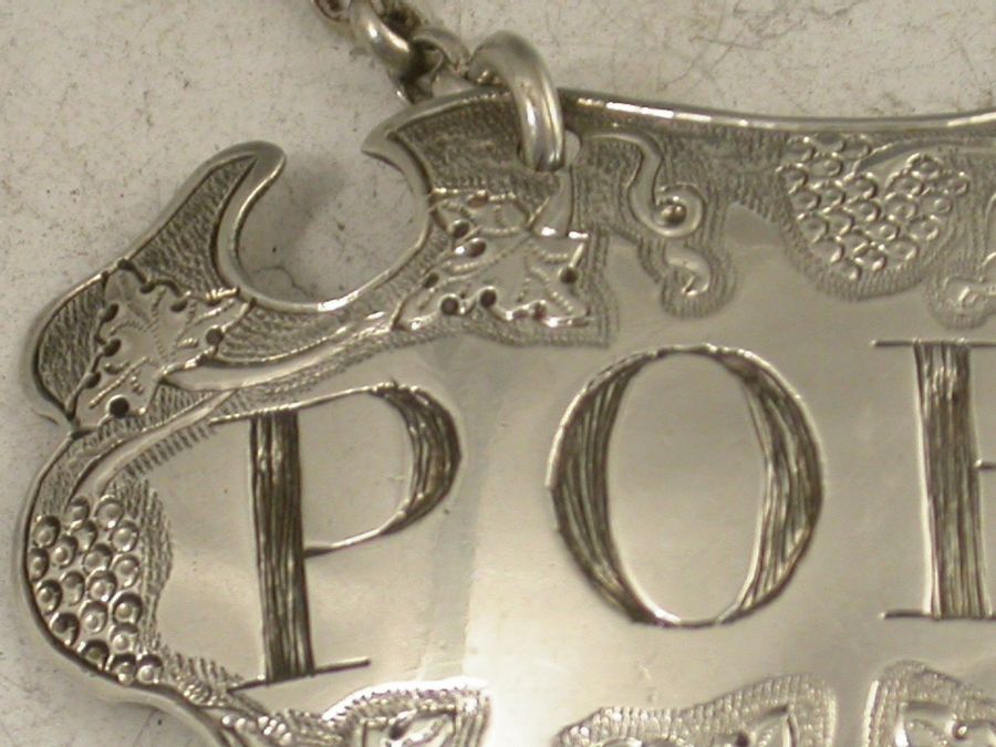 Antique Silver Flat Chased Escutcheon Wine Label 'Port'