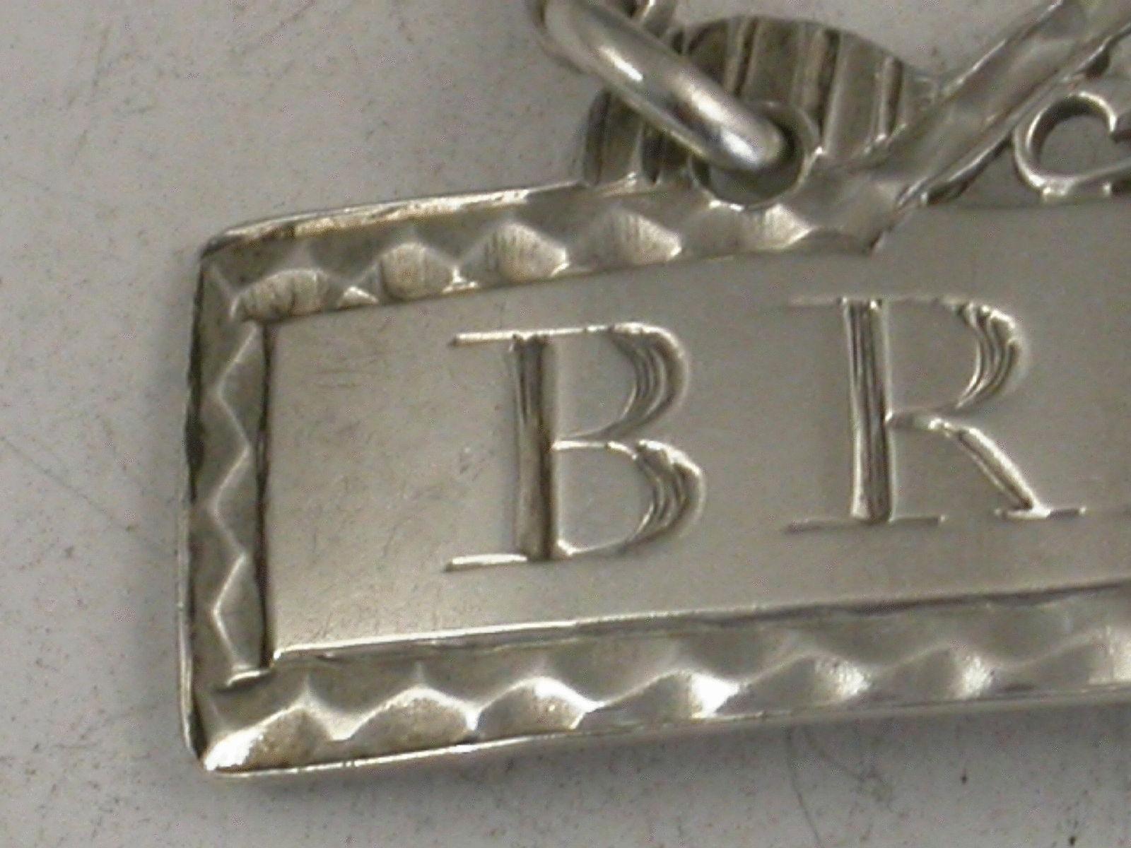 Antique Silver Fret Domed Wine Label 'Brandy' Double Lion Passant Mark