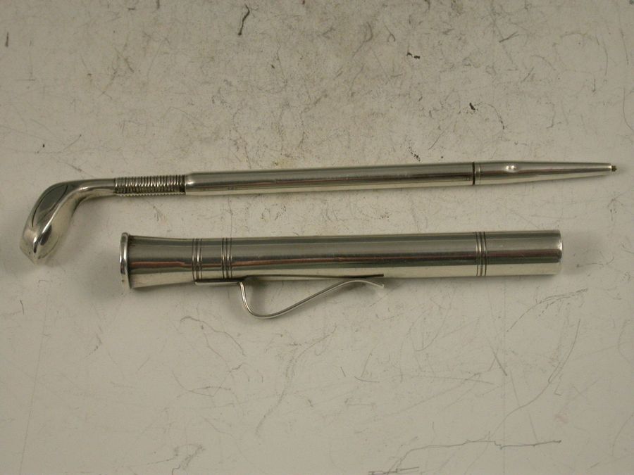 Antique Silver Novelty Golf Club & Bag Propelling Pencil