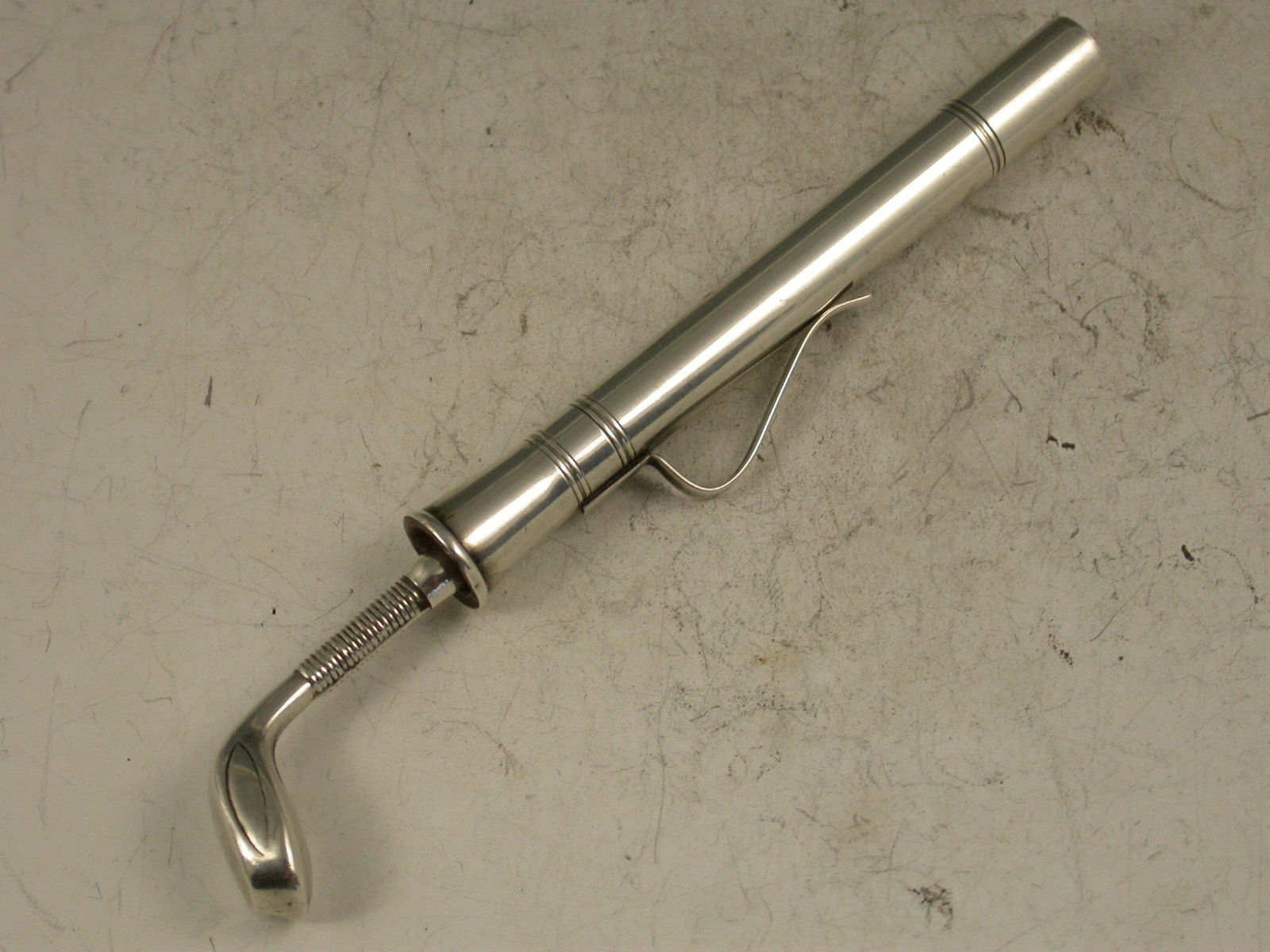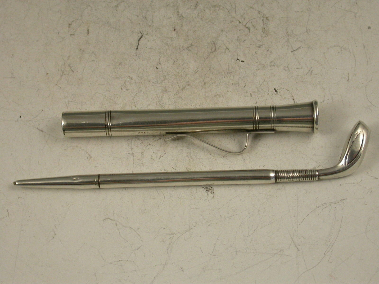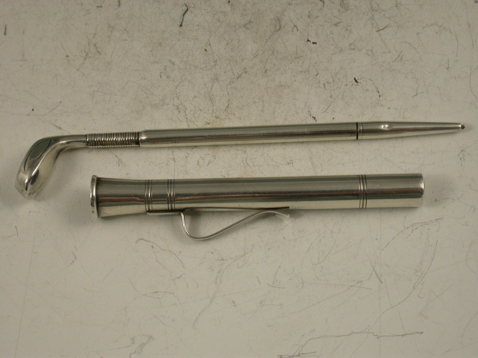 An early 20th century novelty sterling silver Propelling Pencil in the form of a golf club, complete with leather lined golf bag.
