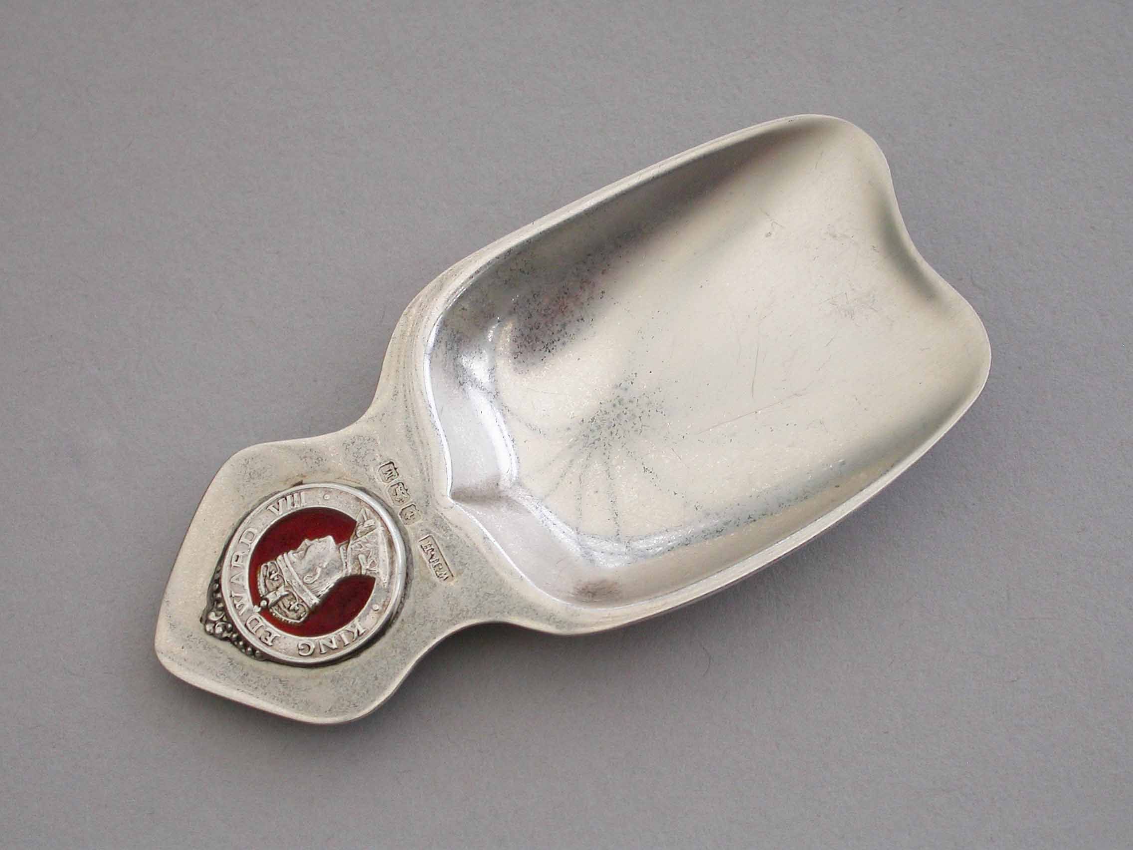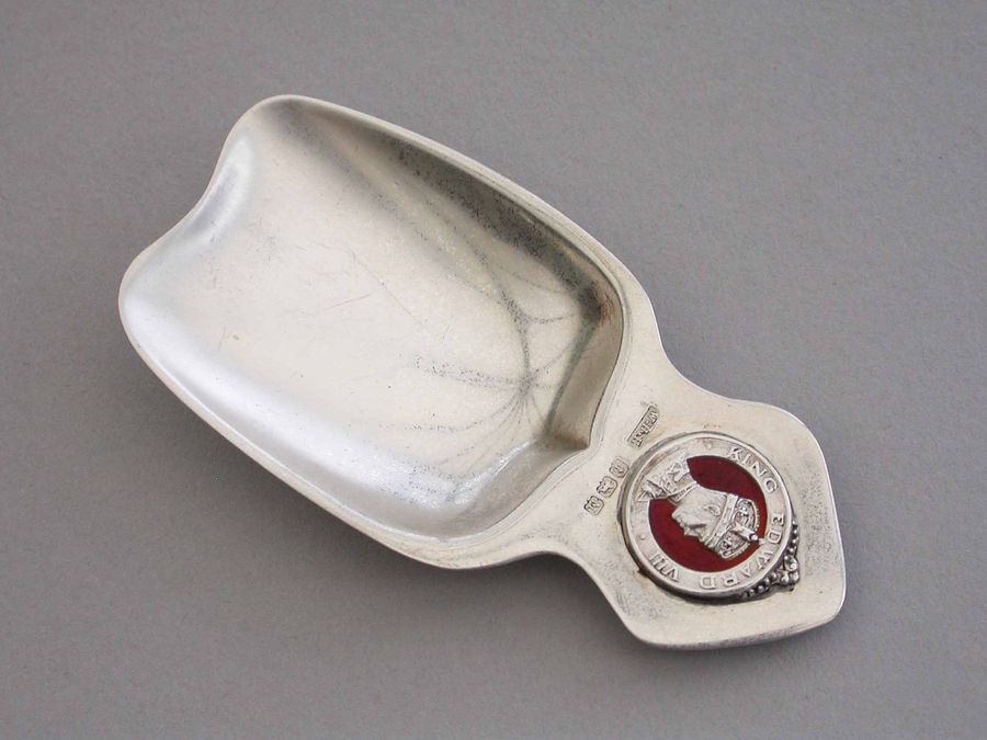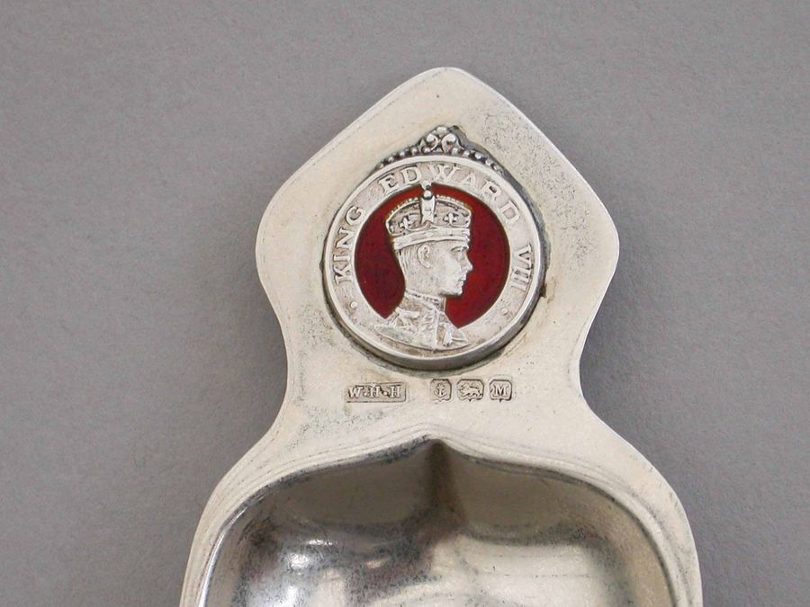 Art Deco Commemorative Silver & Enamel Caddy Spoon - Coronation of Edward VIII