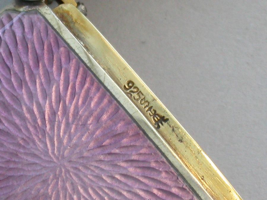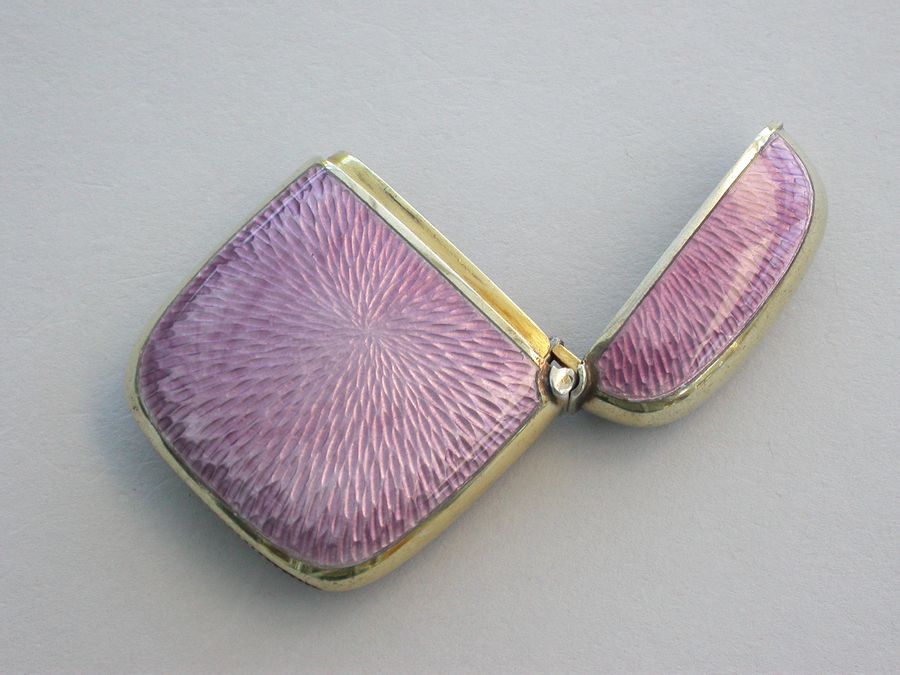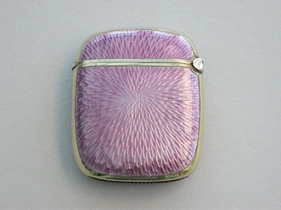 Art Deco Silver Gilt & Lilac Guilloche Enamel Vesta Case