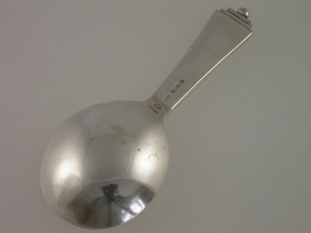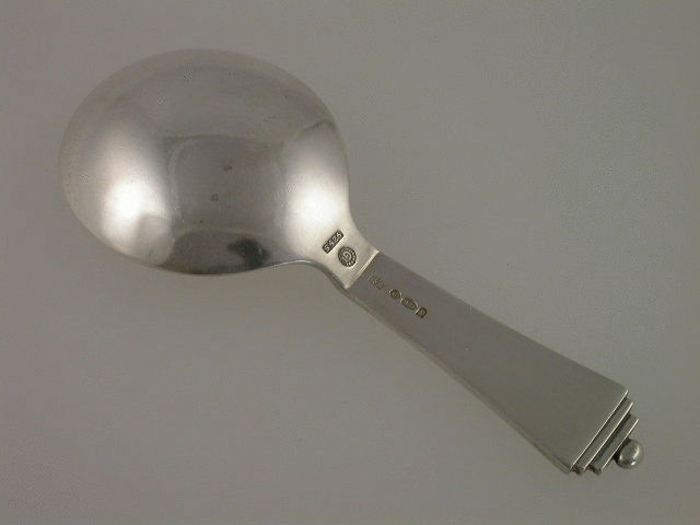 An early 20th century cast silver Caddy Spoon in the Art Deco style. Pyramid pattern.