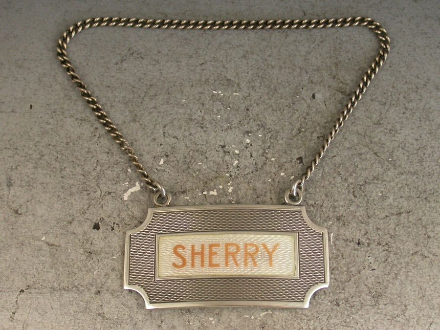 Art Deco Style Silver & Enamel Wine Label 'Sherry'