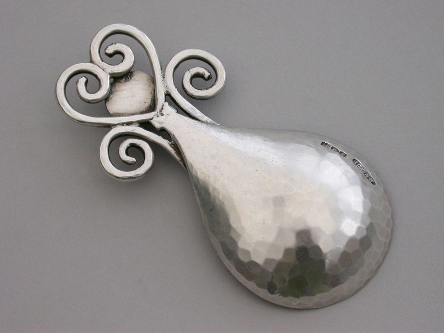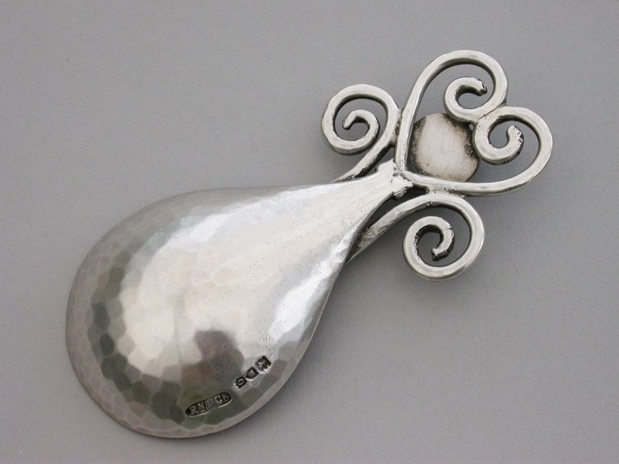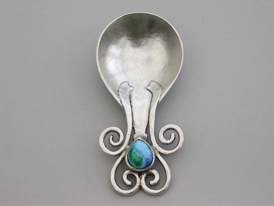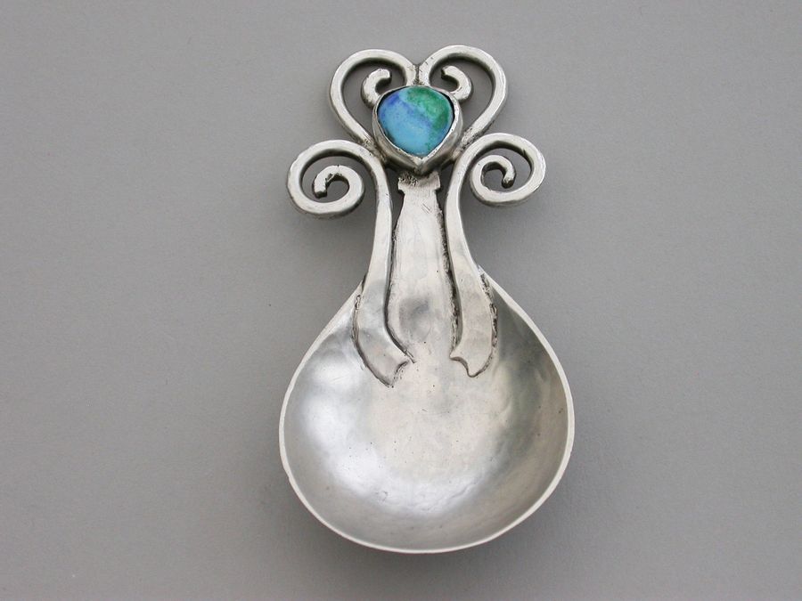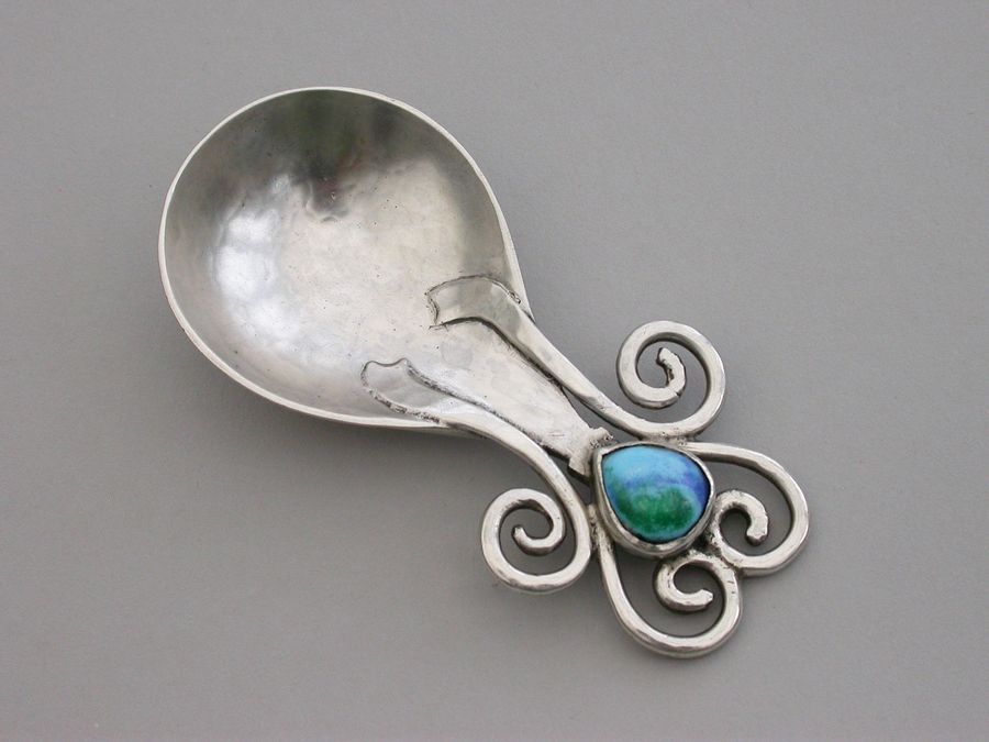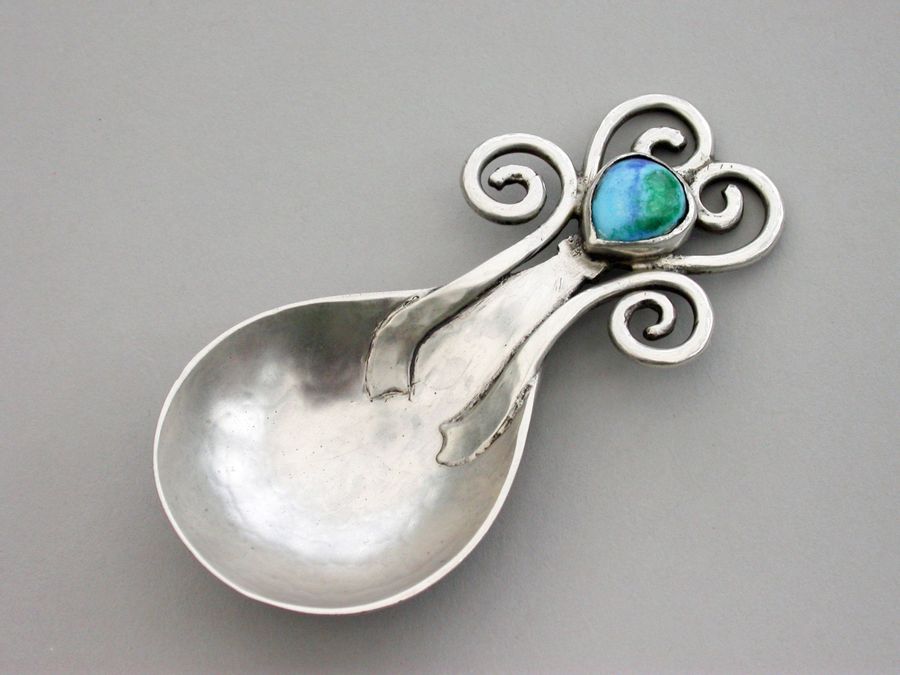 Arts & Craft Cast Silver Caddy Spoon - Enamel Boss