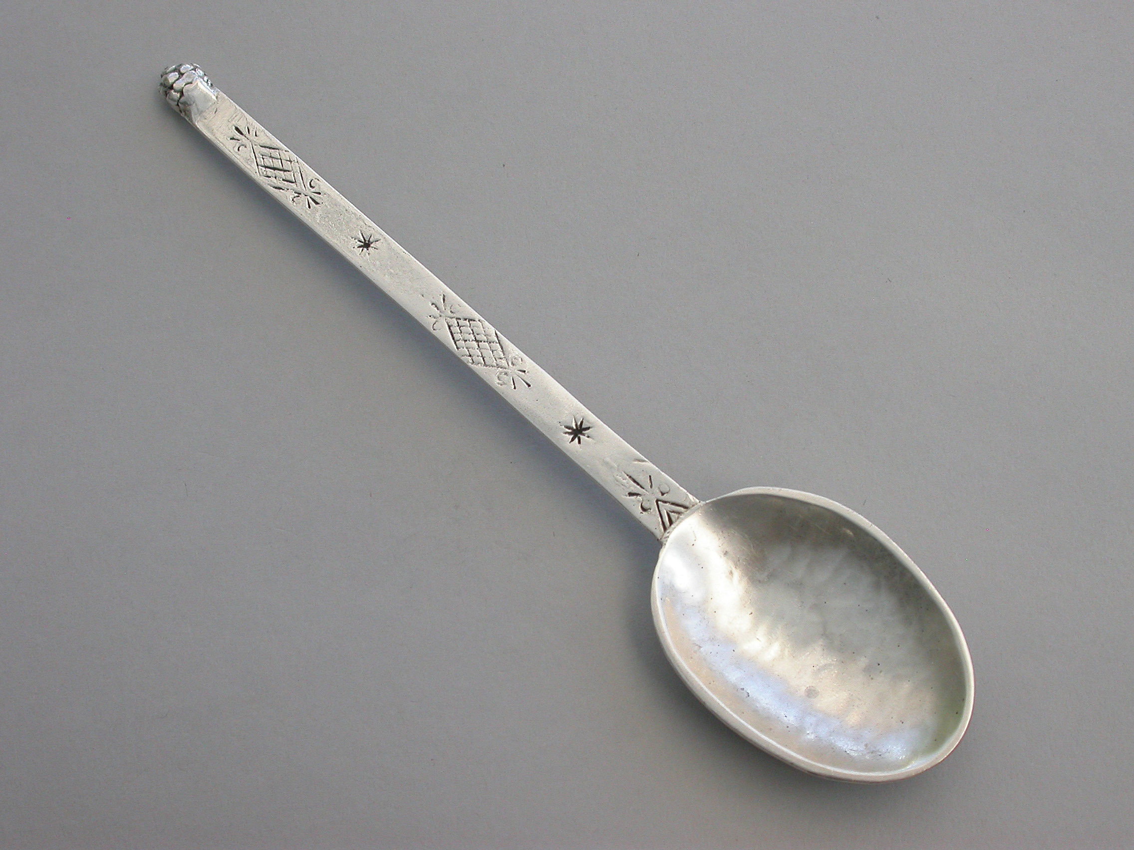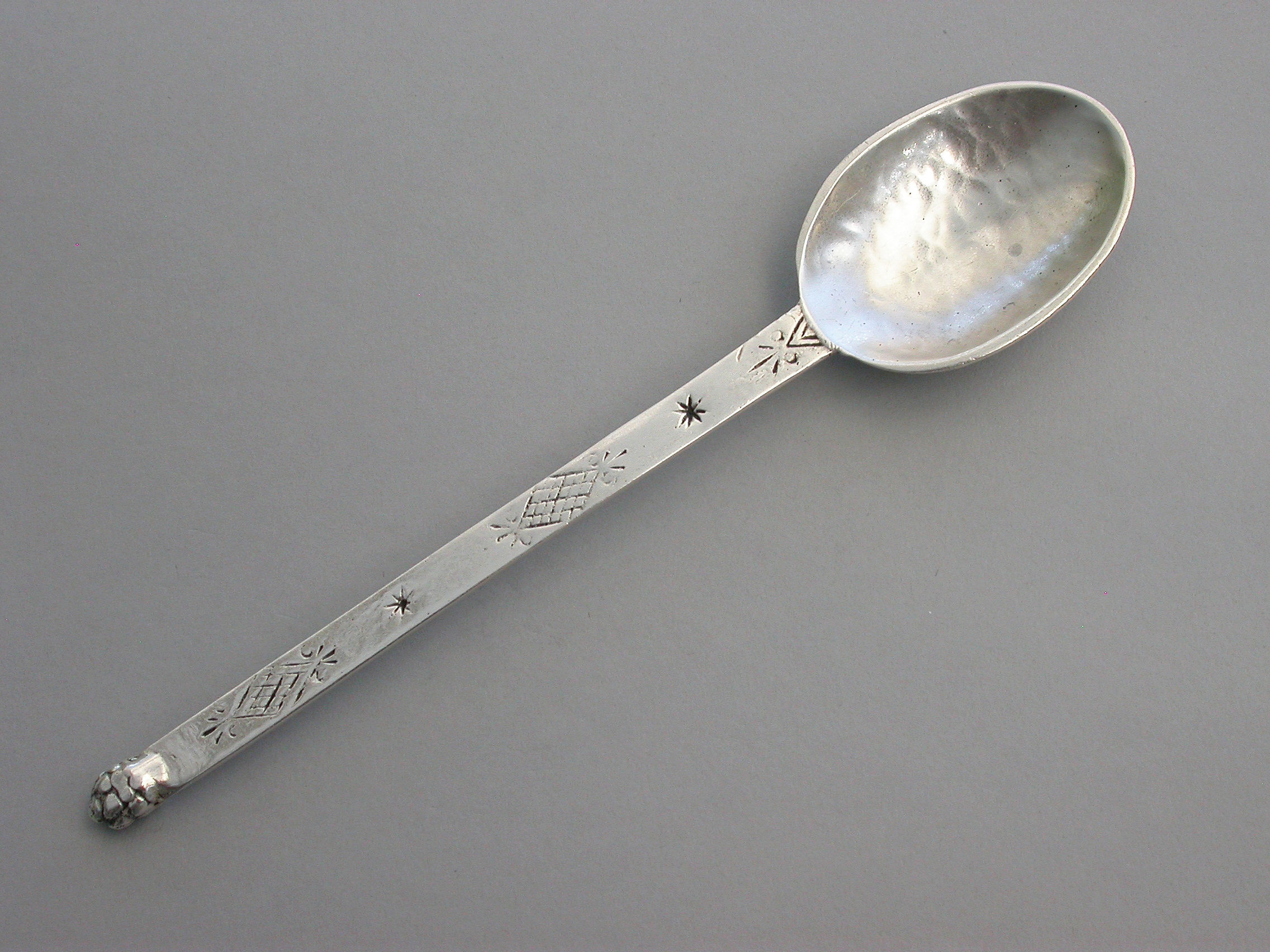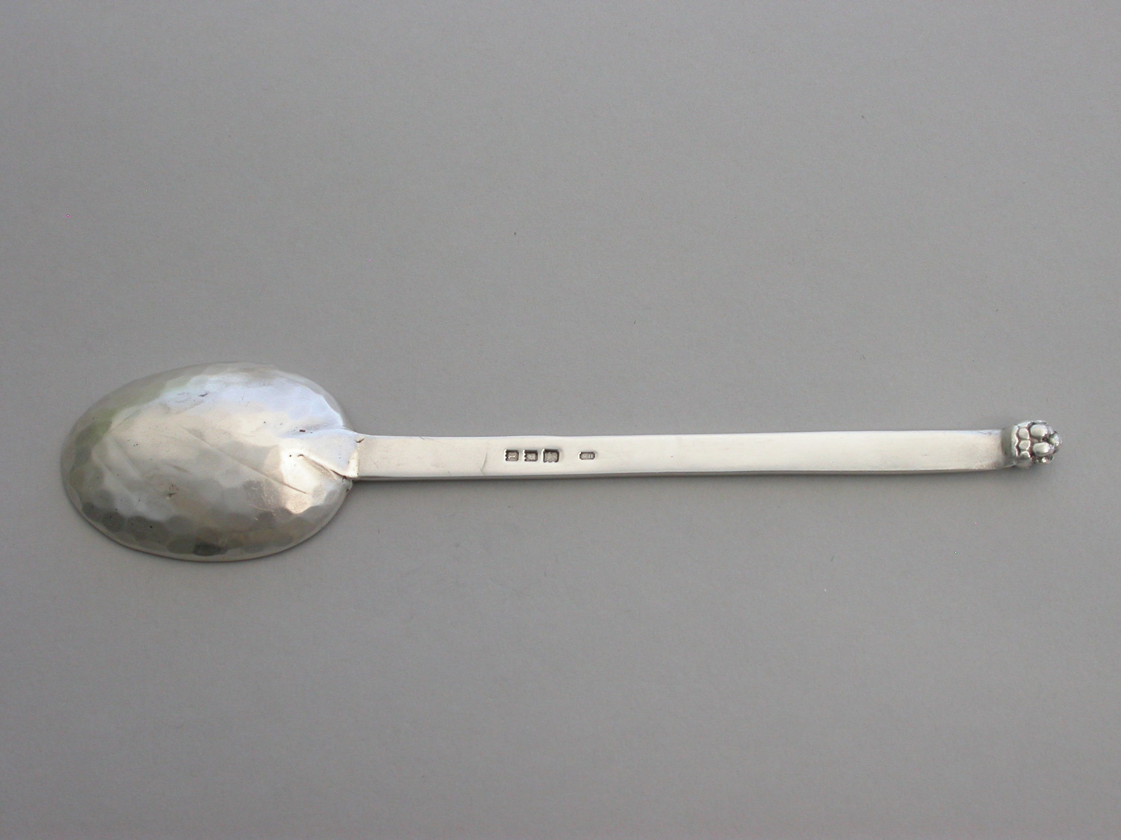 A rare Arts & Crafts hammered silver Spoon, the flat handle chased with Celtic motifs.