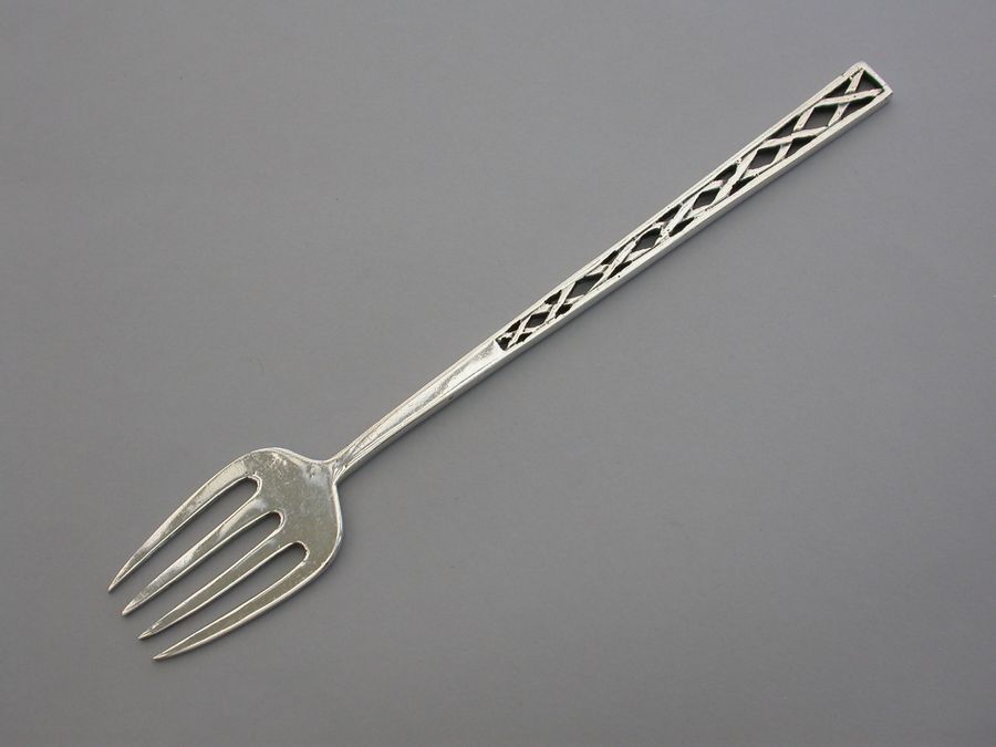 An early 20th century Arts and Crafts style silver Serving Fork with pierced handle.