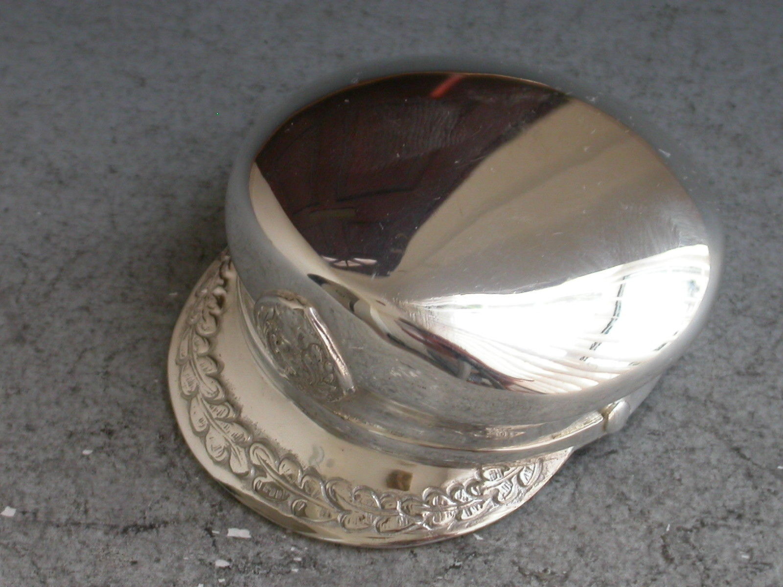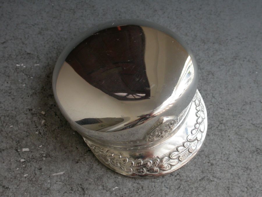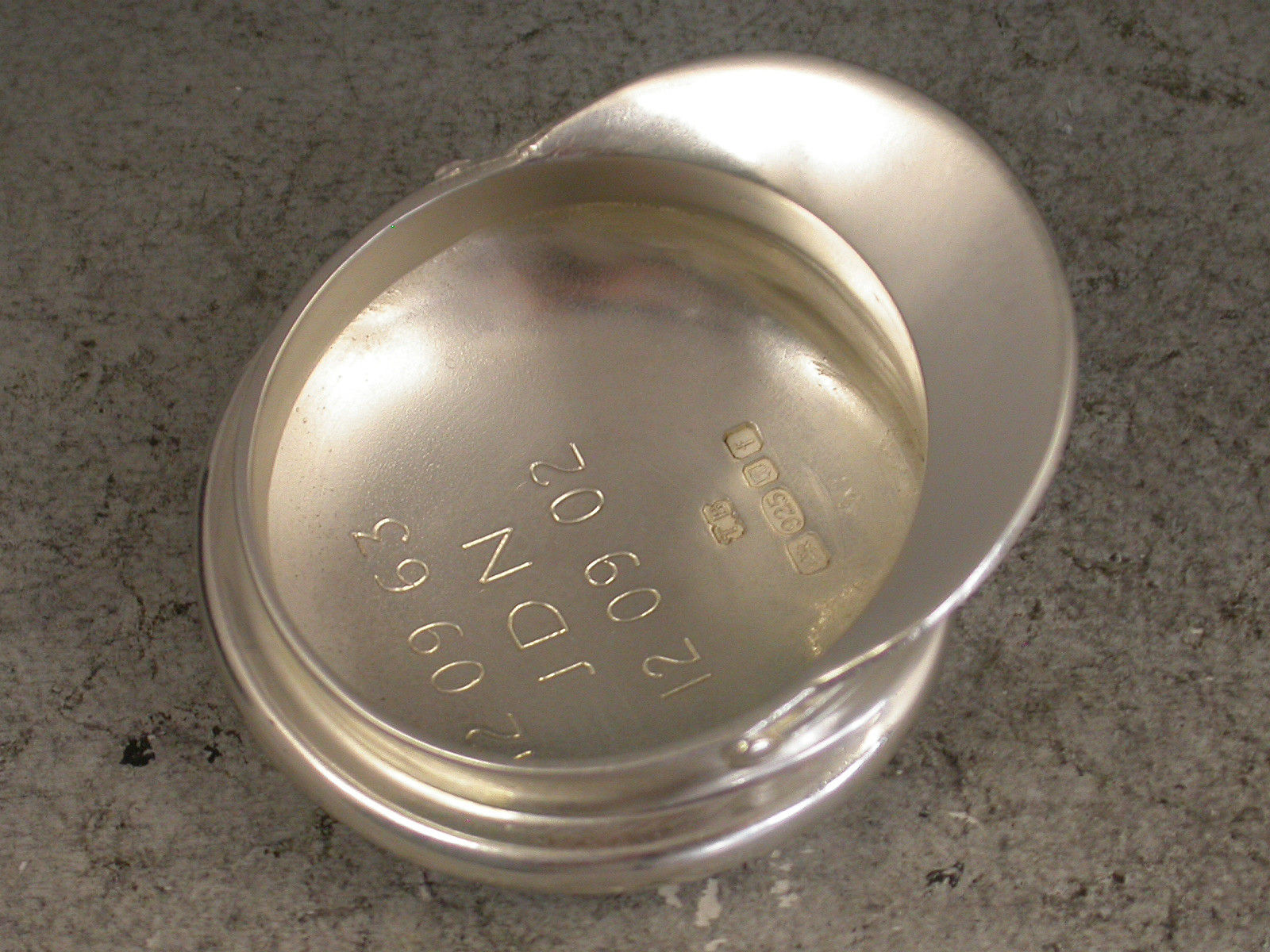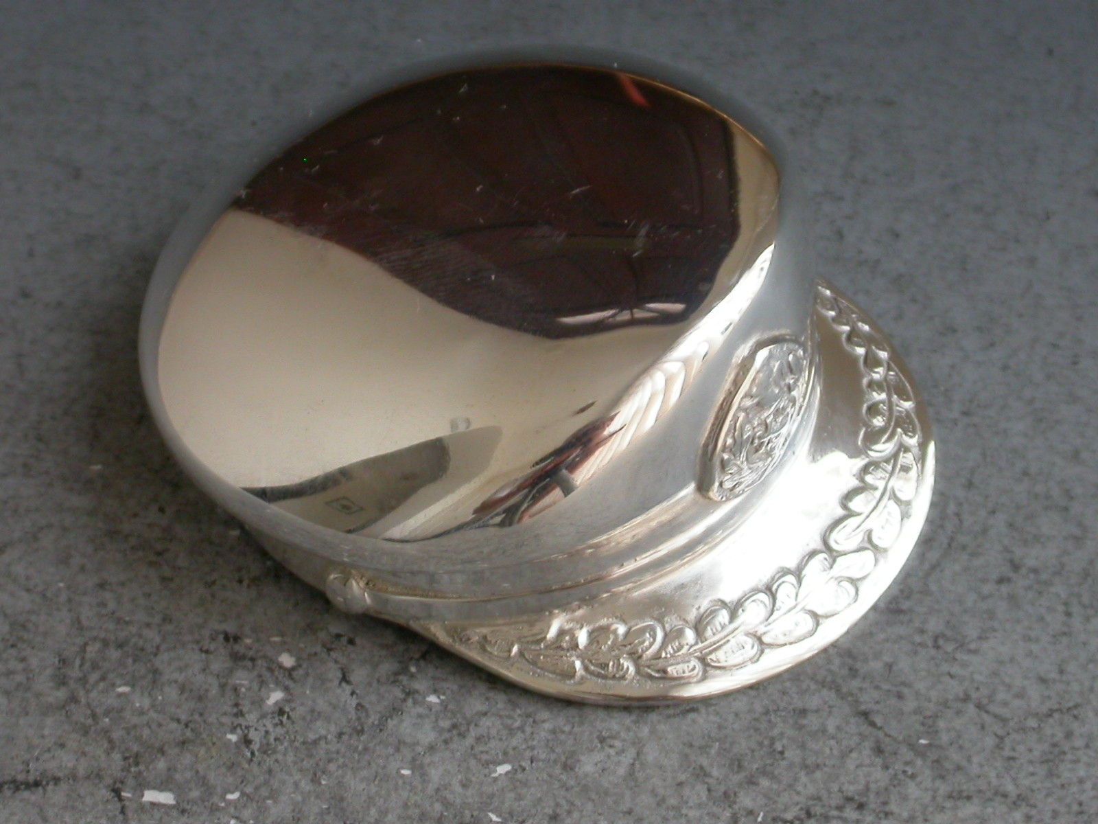 A fine quality contemporary silver Caddy Spoon made in the form of a Trinity House Pilots Cap, to commemorate the late Captain John D. Norie, founder member of the Society of Caddy Spoon Collectors. Engraved: 12 09 63 JDN 12 09 02. Made as a limited edition of 48.