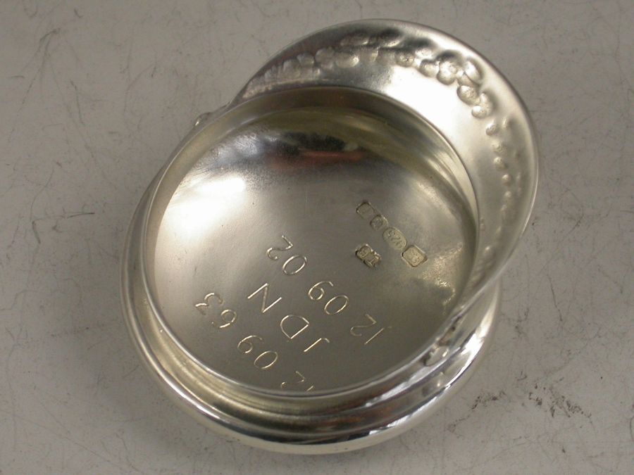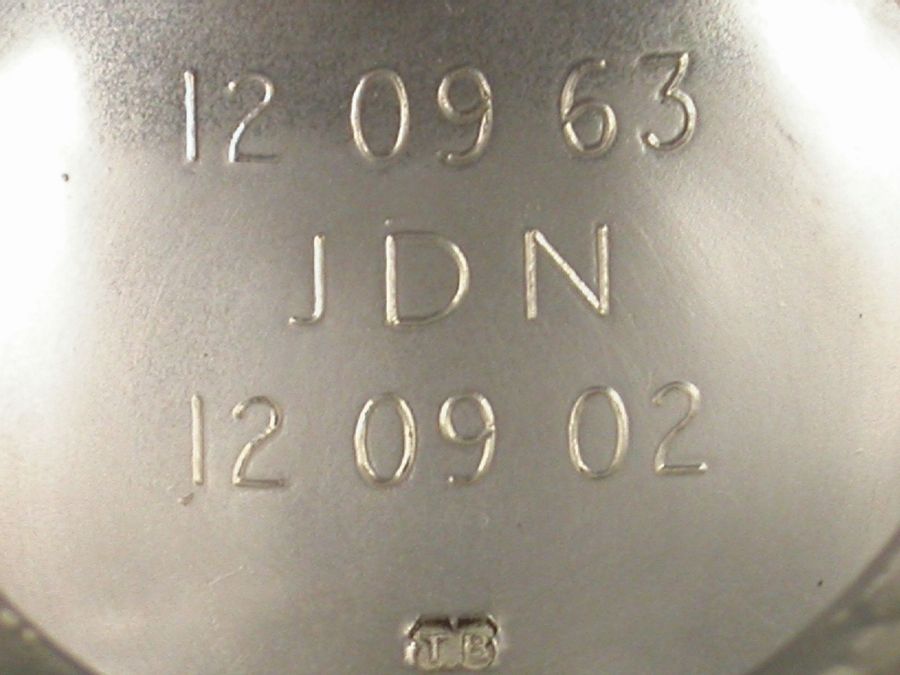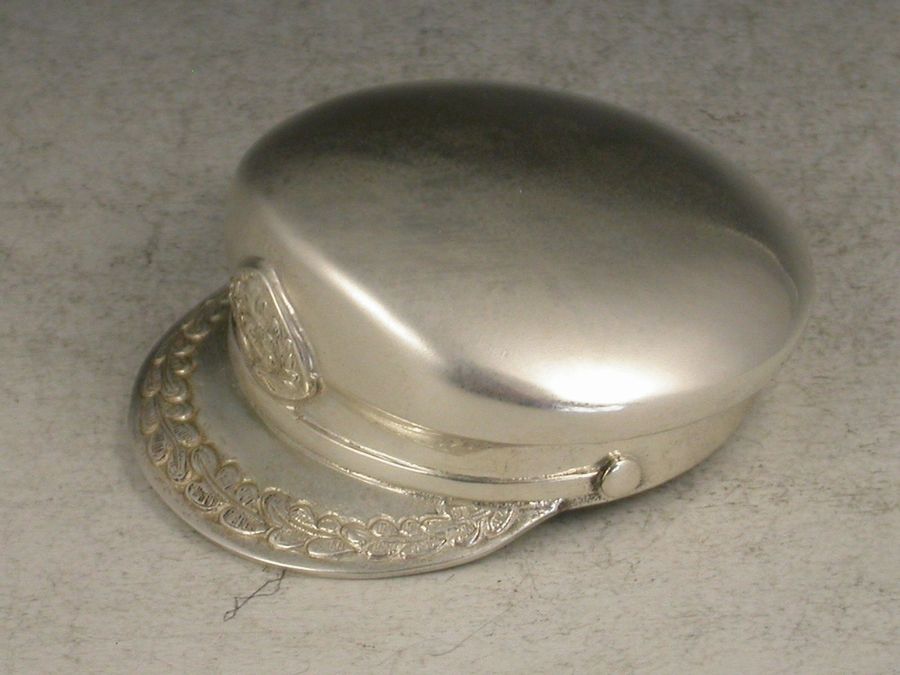 A fine quality contemporary silver Caddy Spoon made in the form of a Trinity House Pilots Cap, to commemorate the late Captain John D. Norie, founder member of the Society of Caddy Spoon collectors. Engraved: 12 09 63 JDN 12 09 02. Made as a limited edition of 48. This actual spoon belonged to the late Captain Norie.