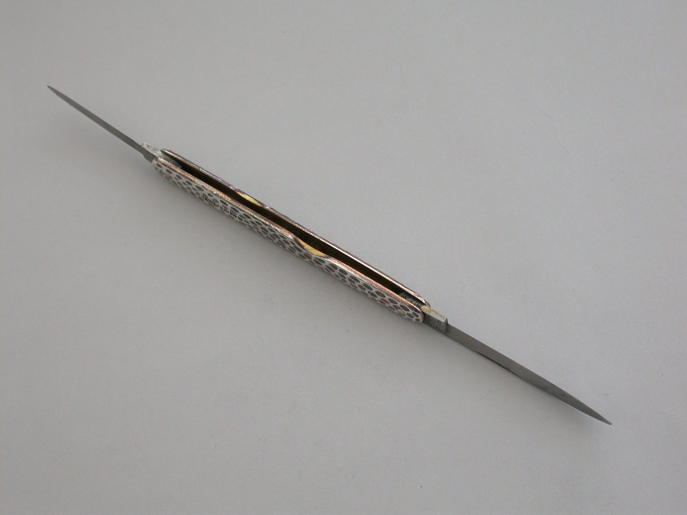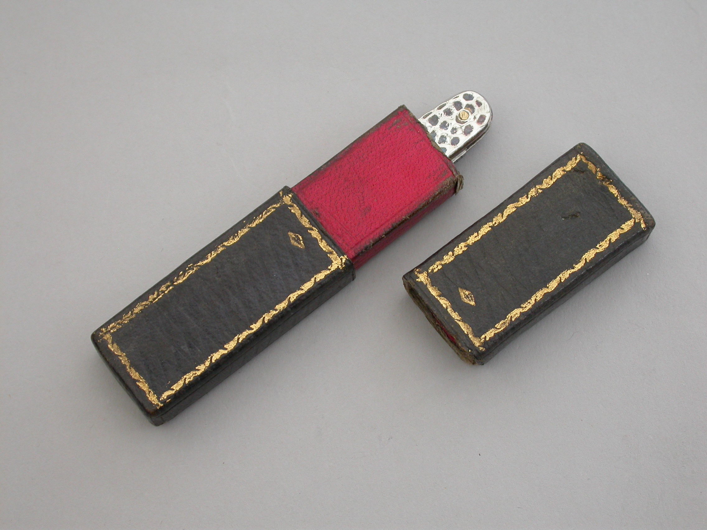 Cased Edwardian Silver & Enamel Folding Pen Knife