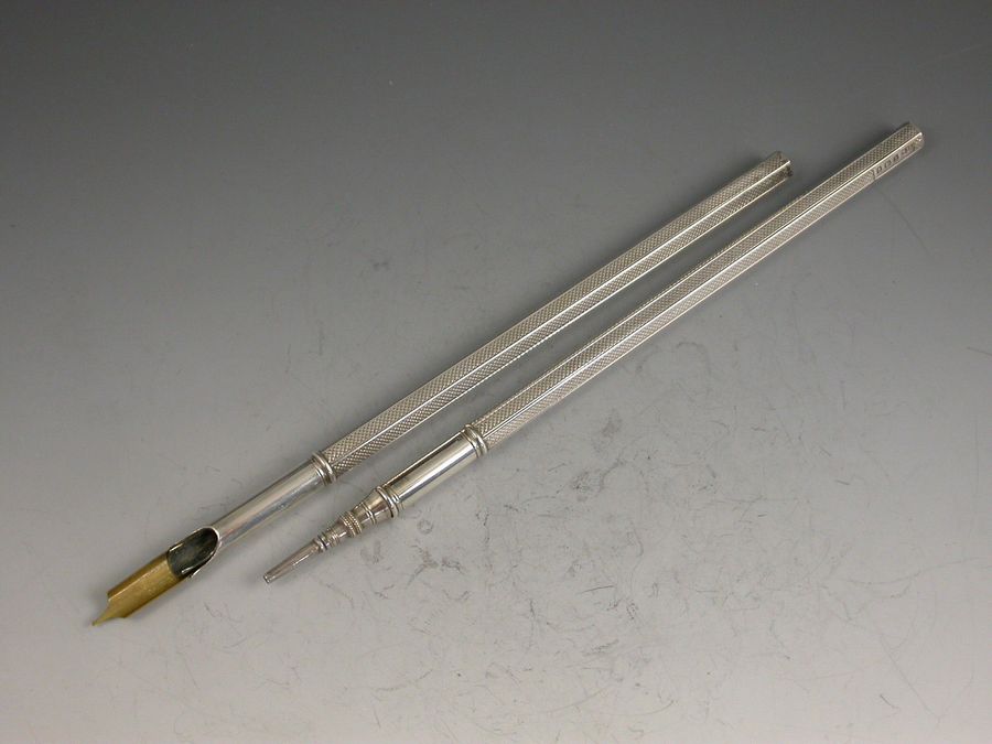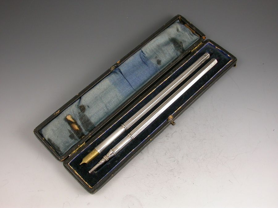 Cased Edwardian Silver Propelling Pencil & Dip Pen