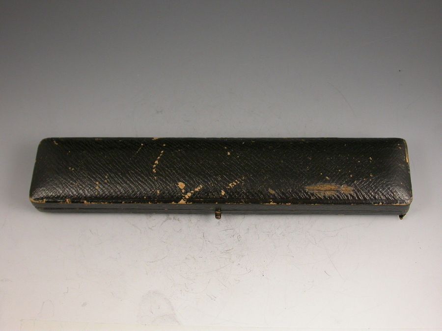 In fair condition, the Dip Pen with a few minor dents to one end and the leather case with some age related wear.