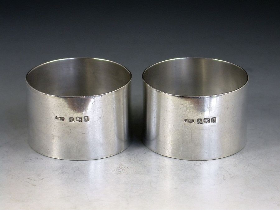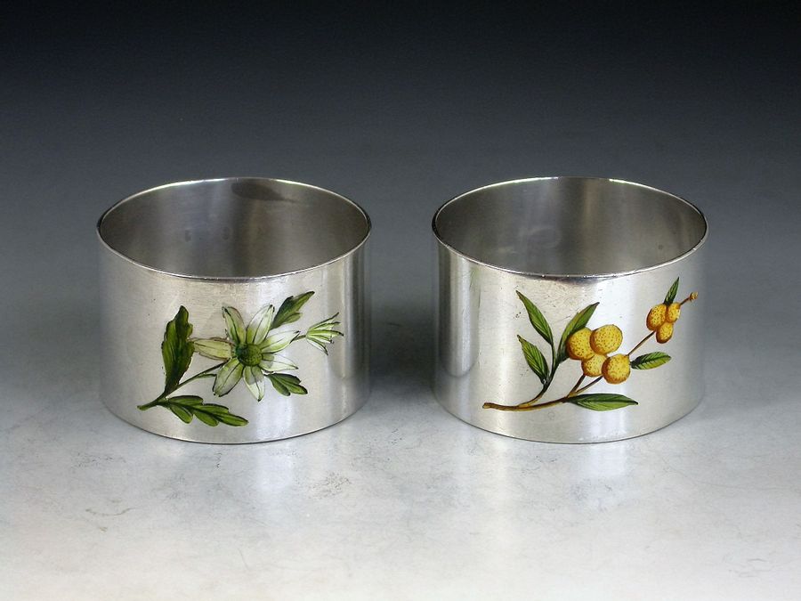 A good quality pair of early 20th century silver Napkin Rings of plain circular form inset with enamelled flowers.