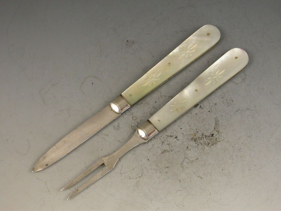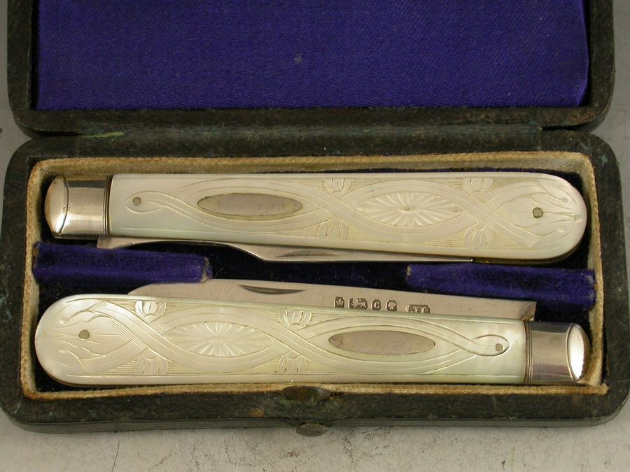 Cased Pair Victorian Folding Fruit Knife & Fork