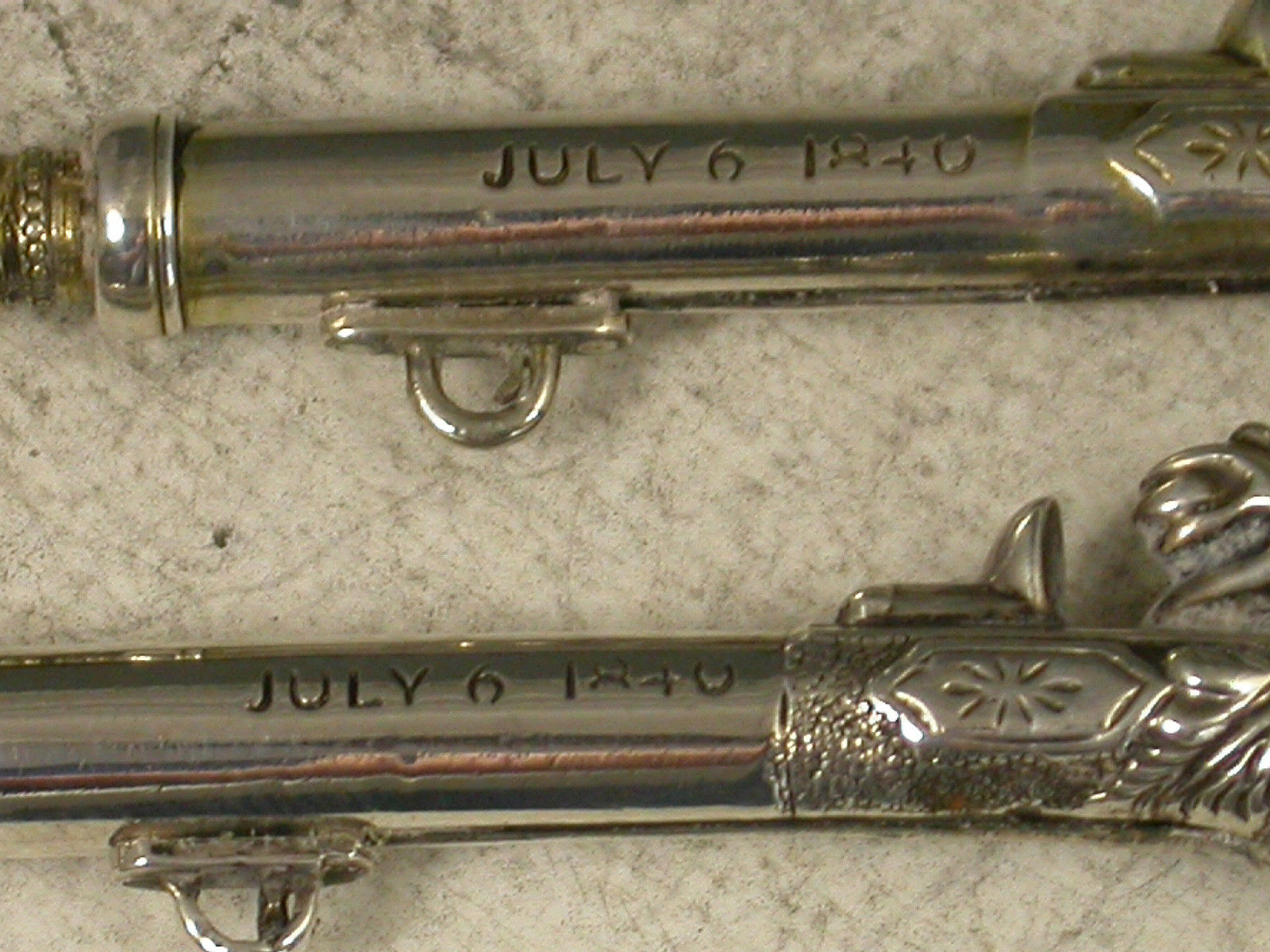 Cased Pair Victorian Novelty Silver Duelling Pistol Propelling Pencils