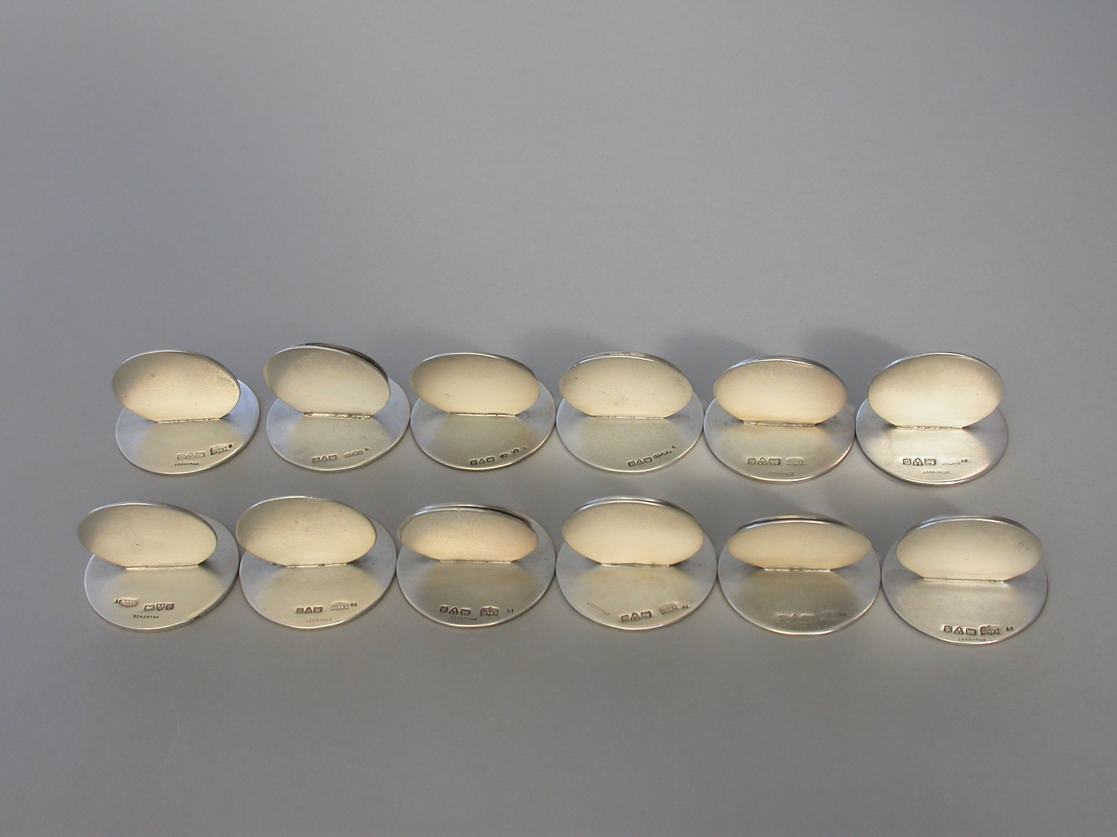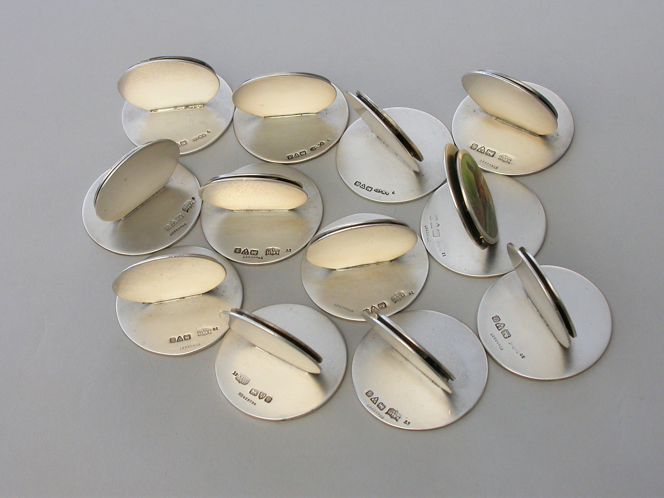 Cased Set 12 Silver & Enamel Bird Menu Holders