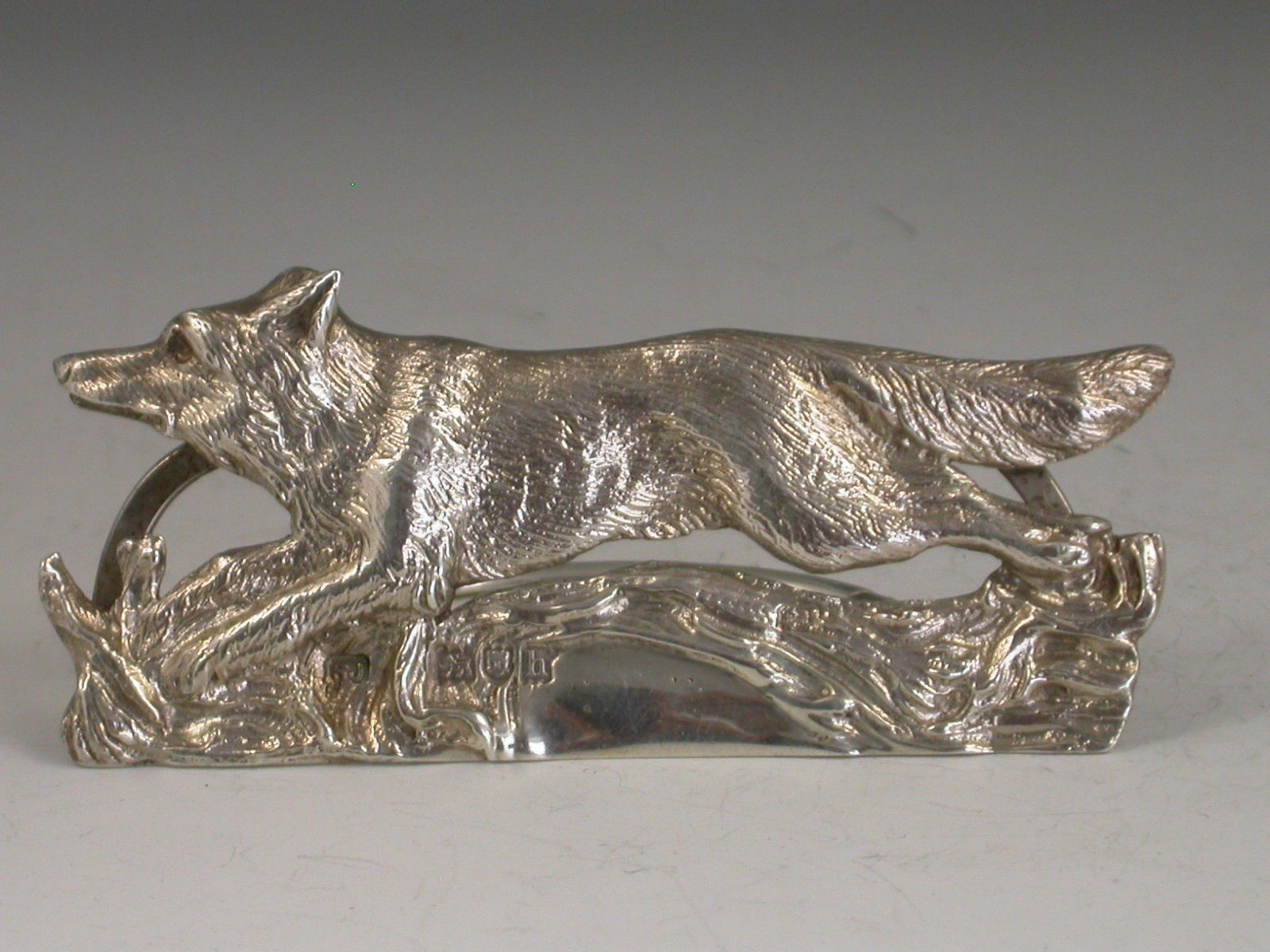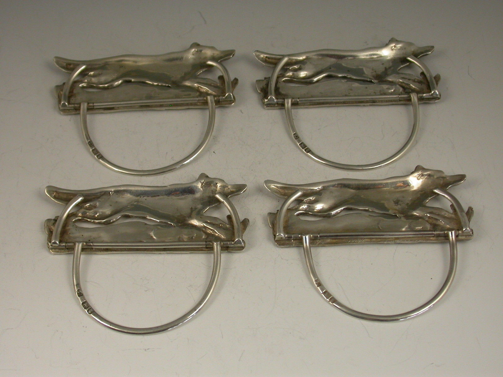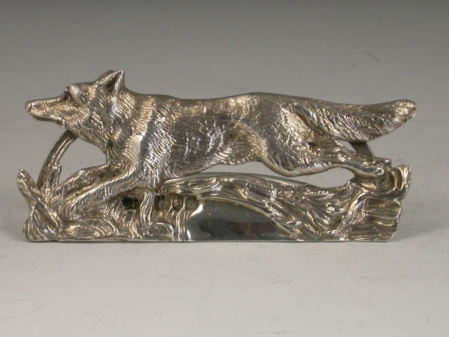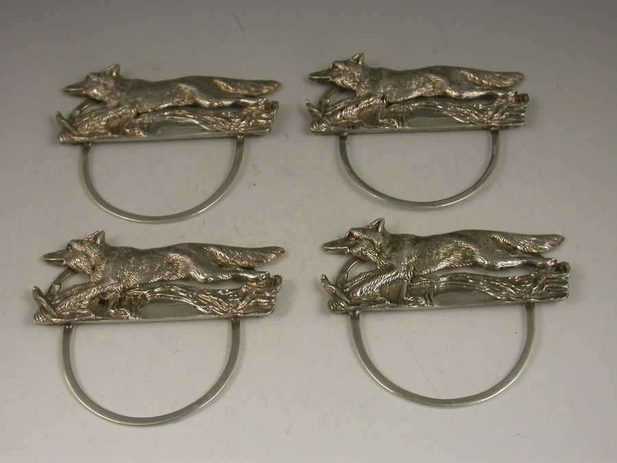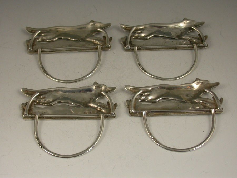 Cased Set 4 Edwardian Silver Running Foxes Menu Holders