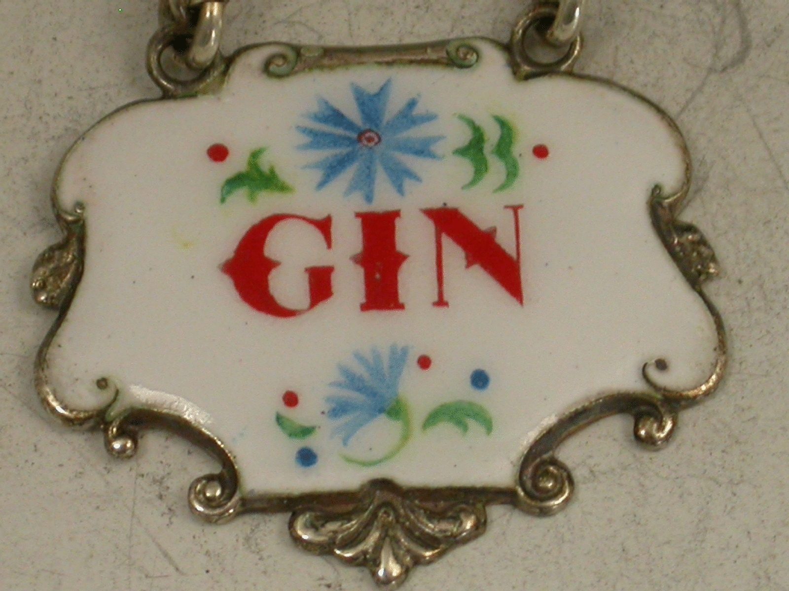 Cased Set 4 Mid 20th Century Enamel Spirit Labels