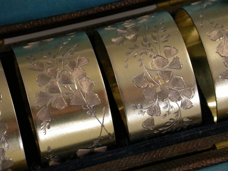 Cased Set 4 Victorian Parcel Gilt Napkin Rings