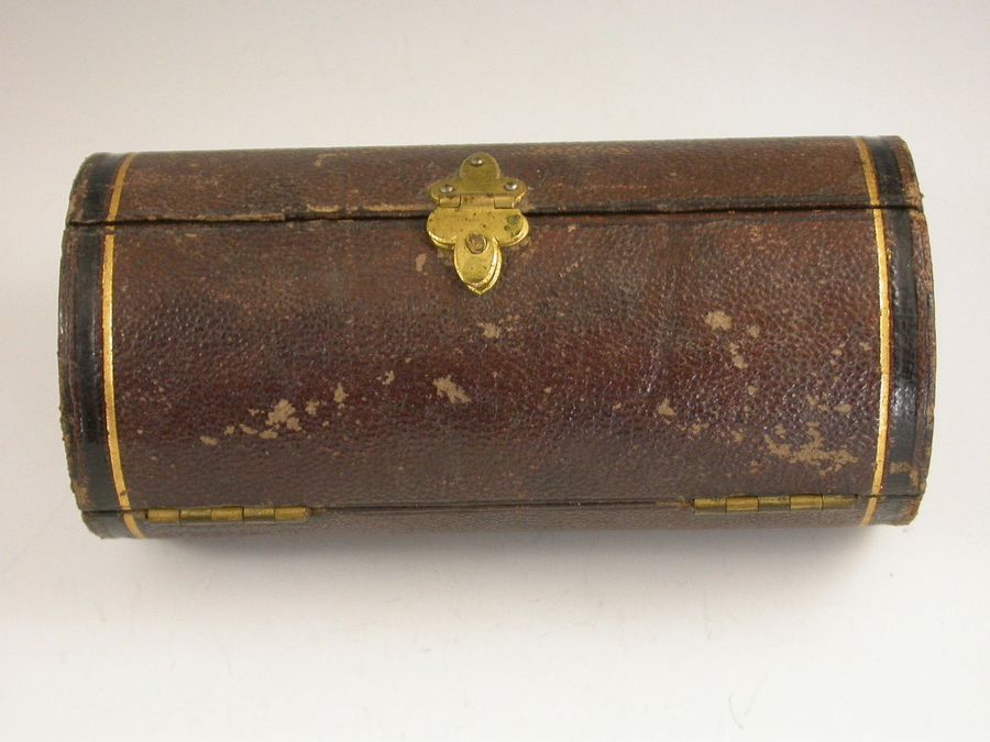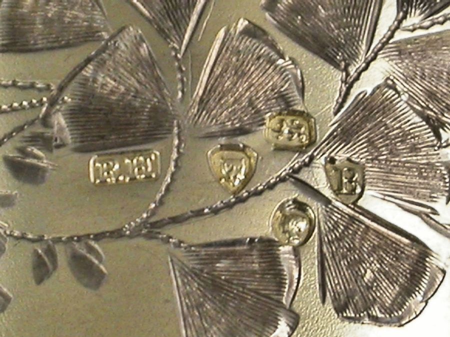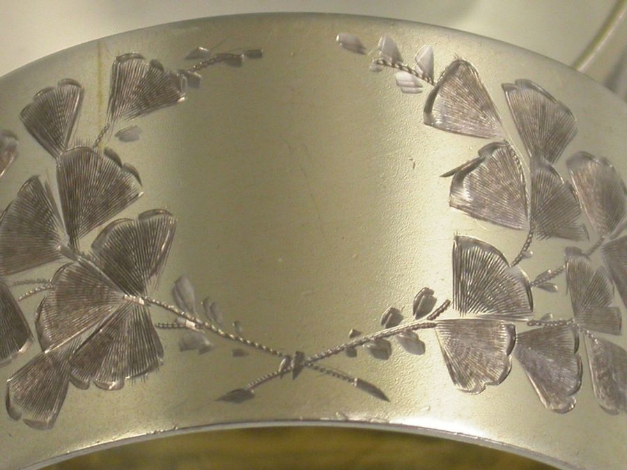 A very fine set of four Victorian parcel gilt Napkin Rings with finely engraved ivy leaf decoration, vacant cartouches free from monograms or initials. Complete with original silk and velvet lined tubular leather case.