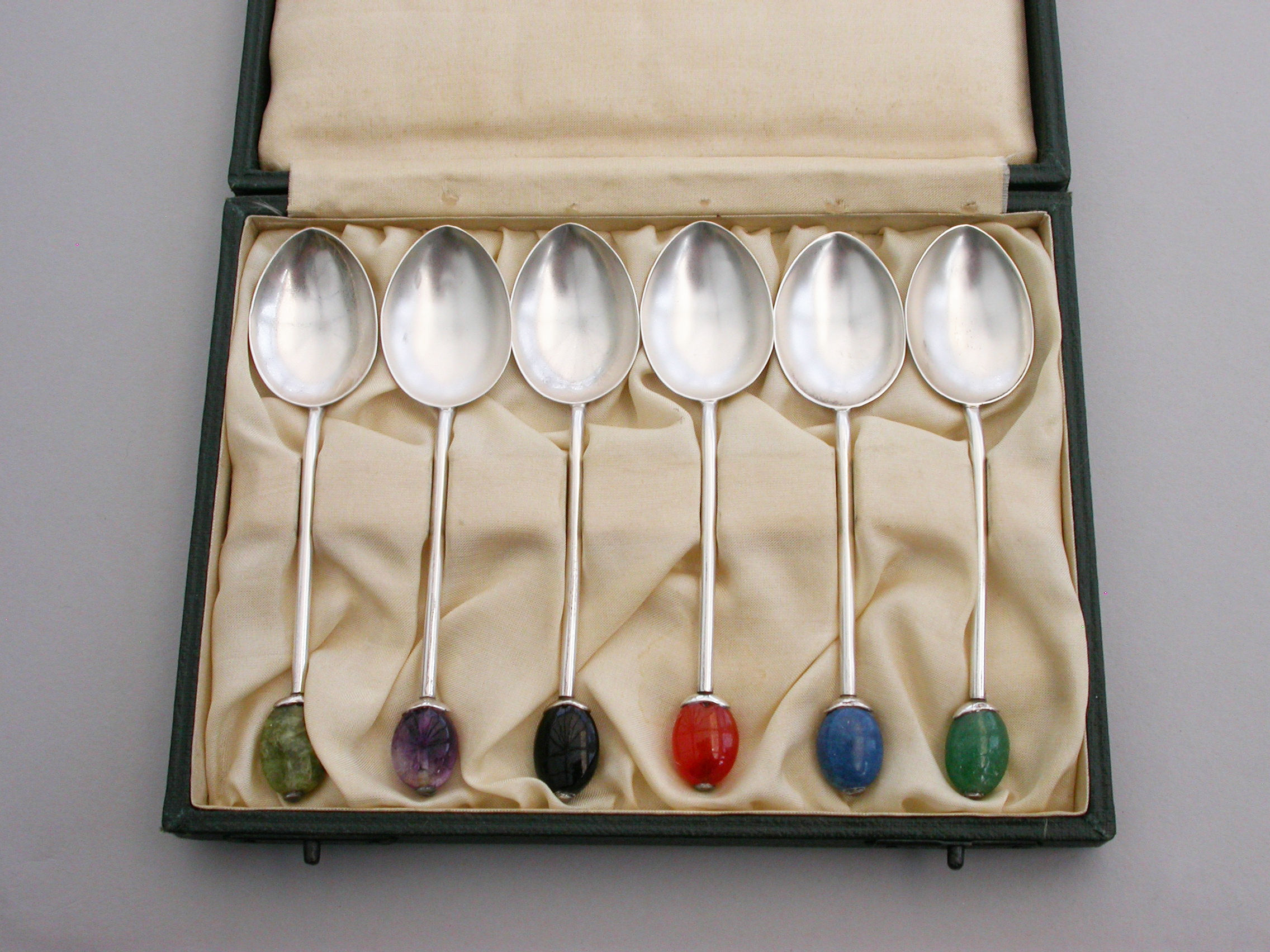 Cased Set of 6 Hardstone Coffee-Bean Spoons