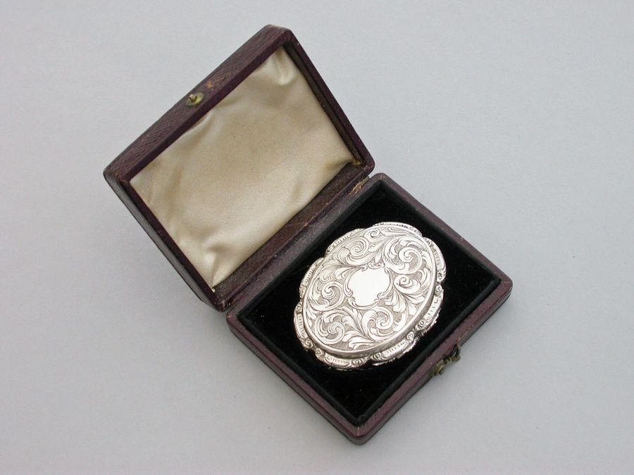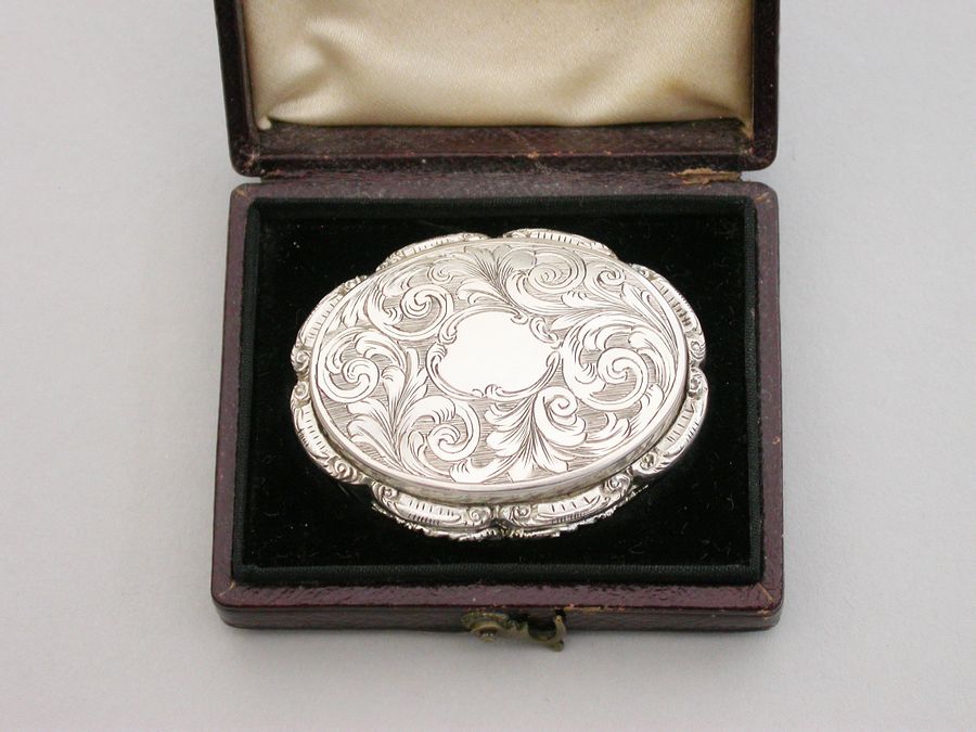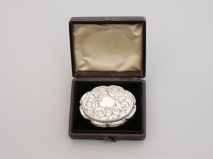 Cased Victorian Oval Silver Memorial Vinaigrette