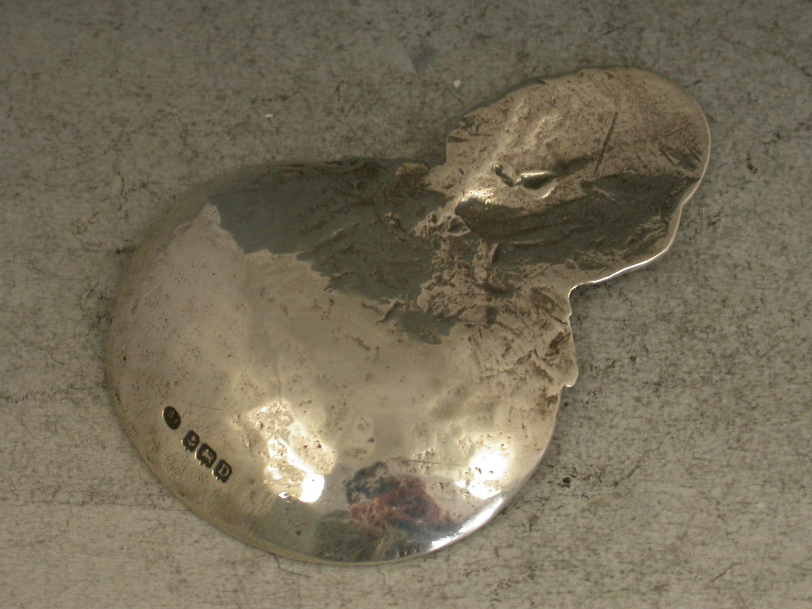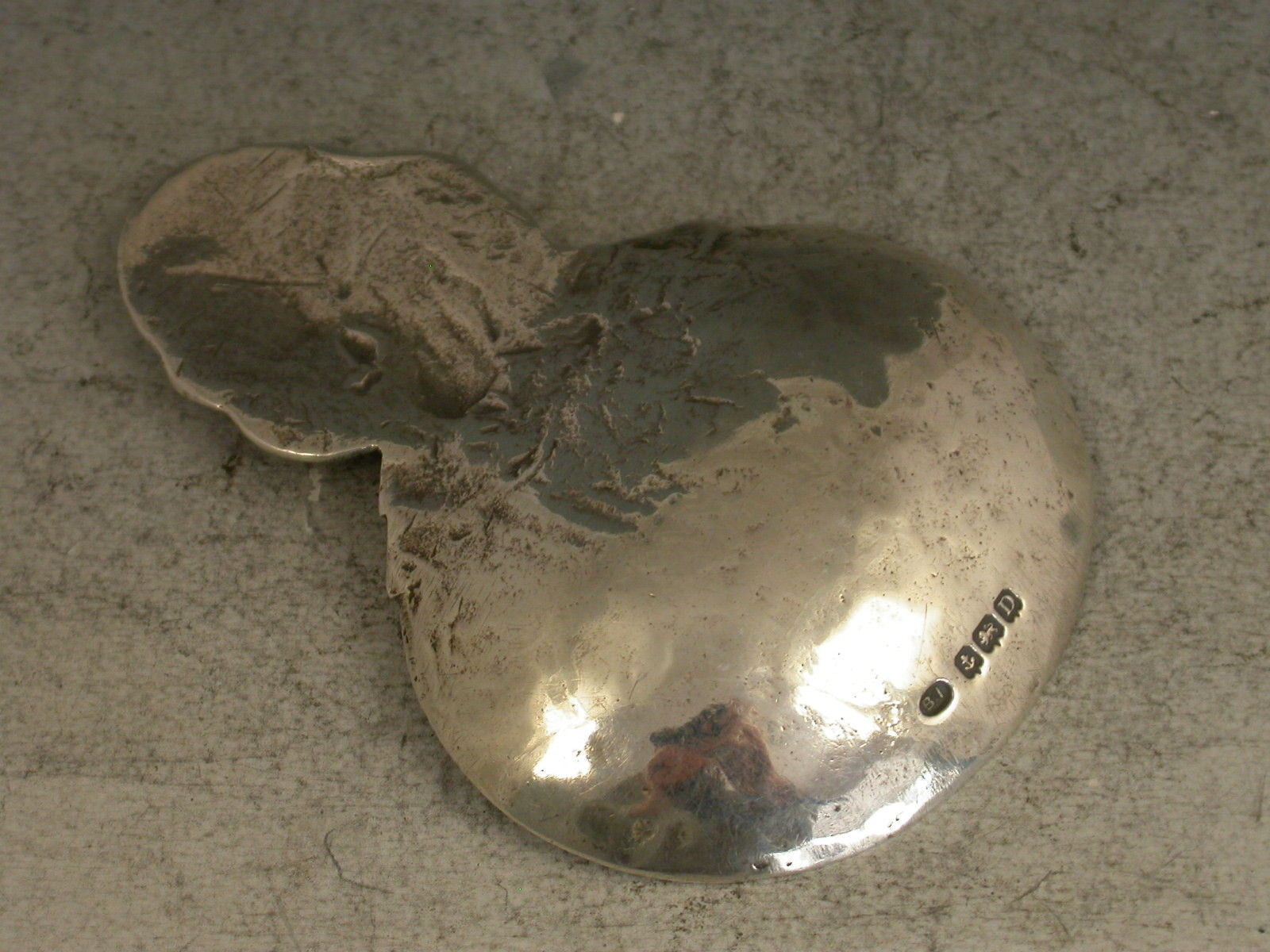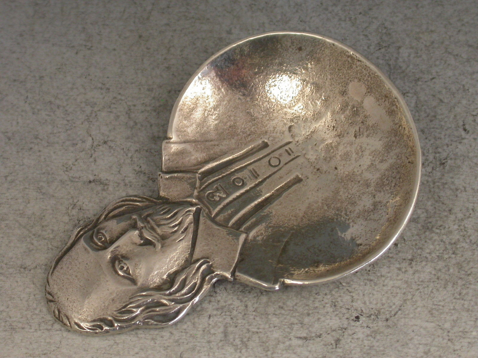 A rare early 20th century cast silver figural Caddy Spoon depicting 'The Bard', William Shakespeare, with hammered circular bowl.