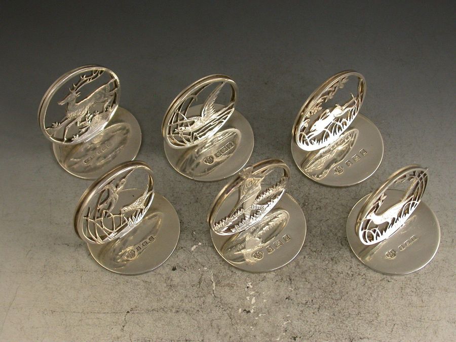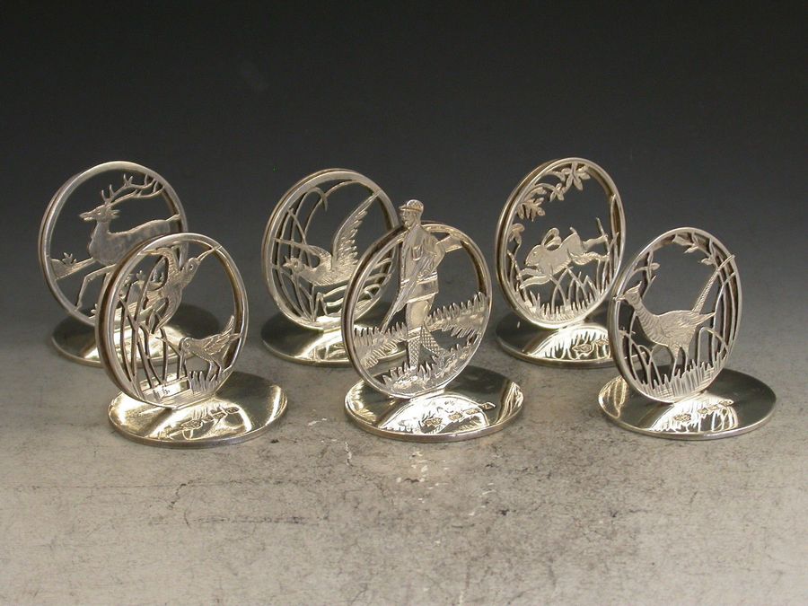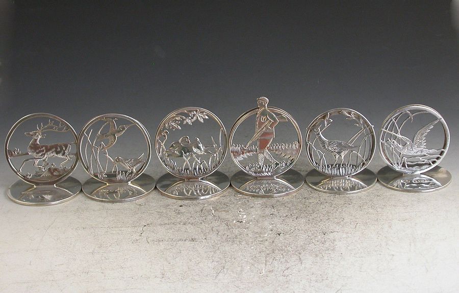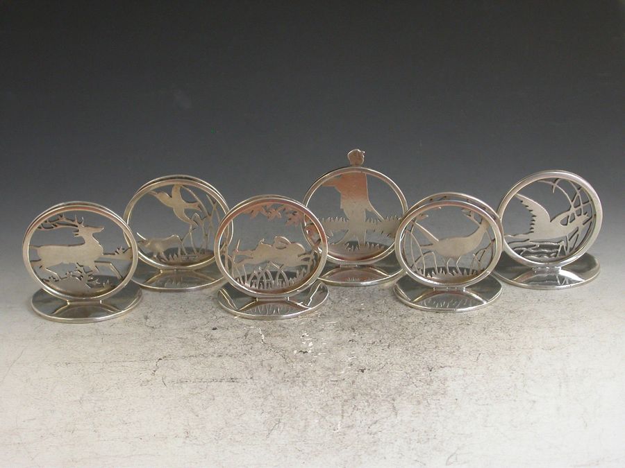 Composite Set 6 George V Silver Hunting / Shooting Menu Holders