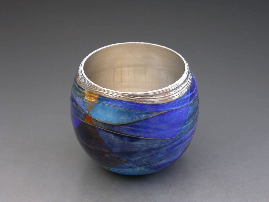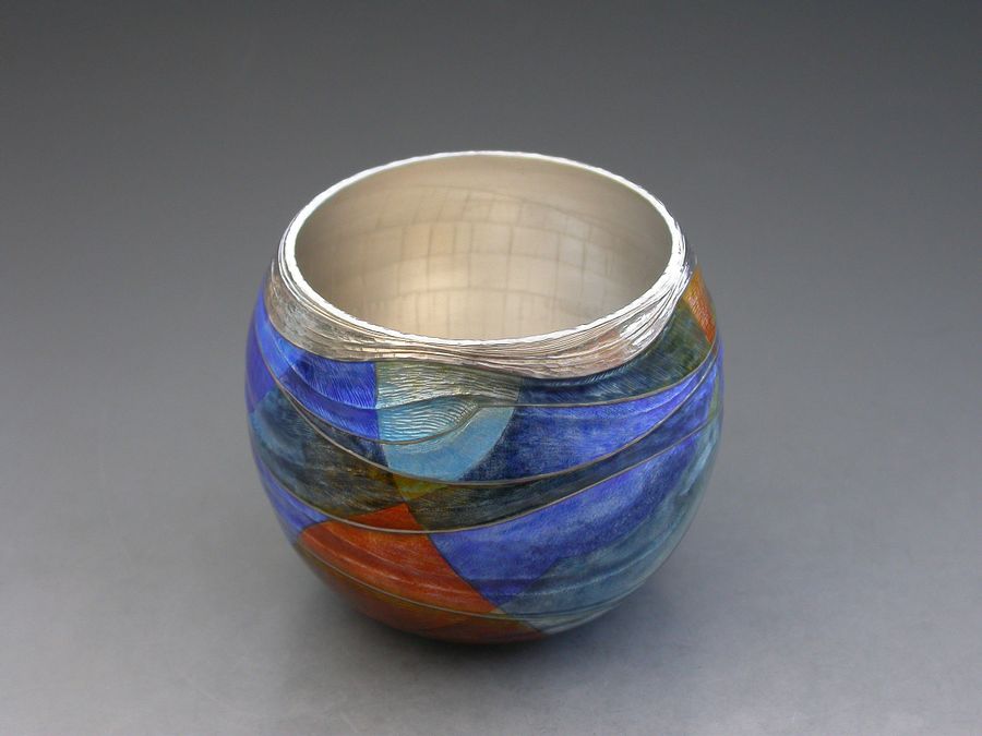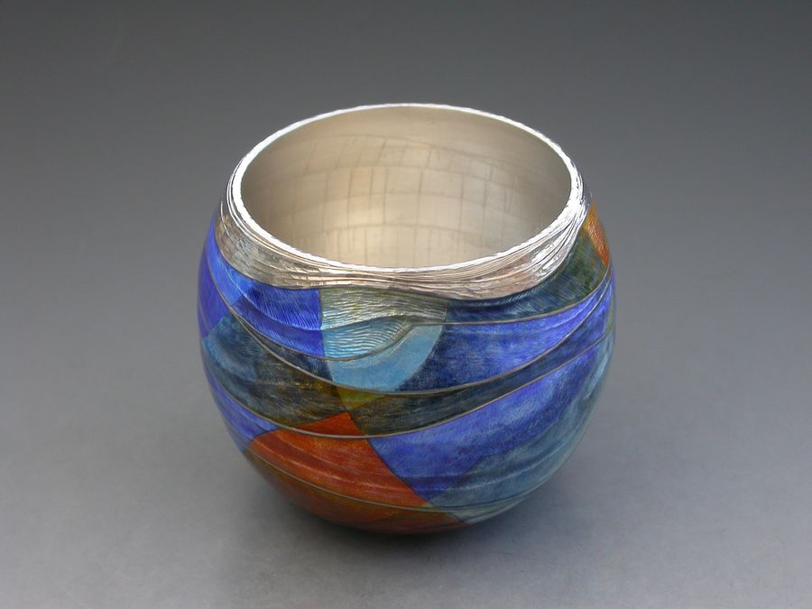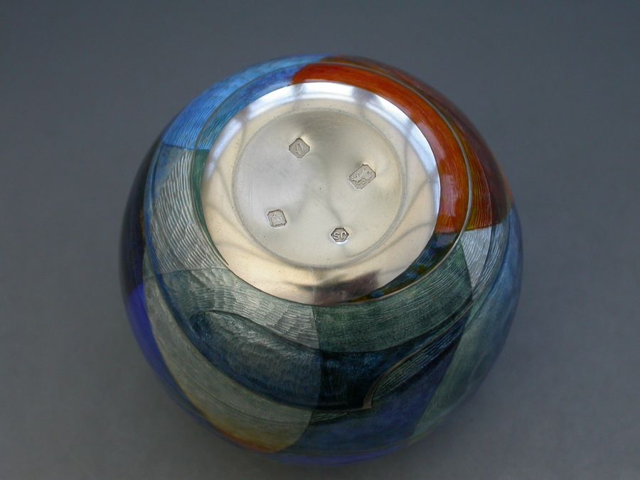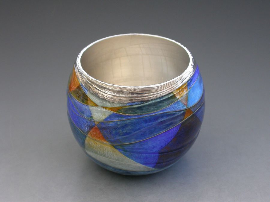 Jane Short a well-established maker producing items of enamelled silverware, often made to commission. These individually designed pieces may be richly coloured or make more subtle use of the wide range of colours available to the enameller, and are a painterly and evocative exploration of colour & imagery. Using the traditional techniques of champlevé and basse-taille, her work is a rich and evocative exploration of colour and imagery.