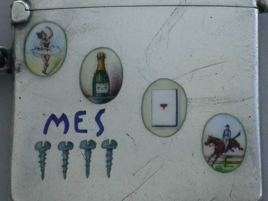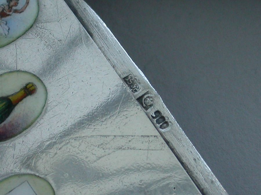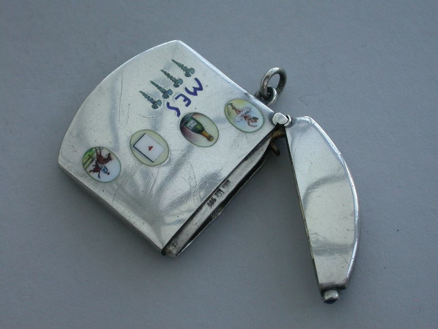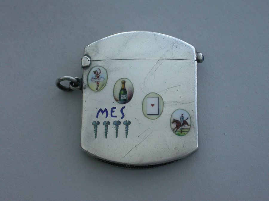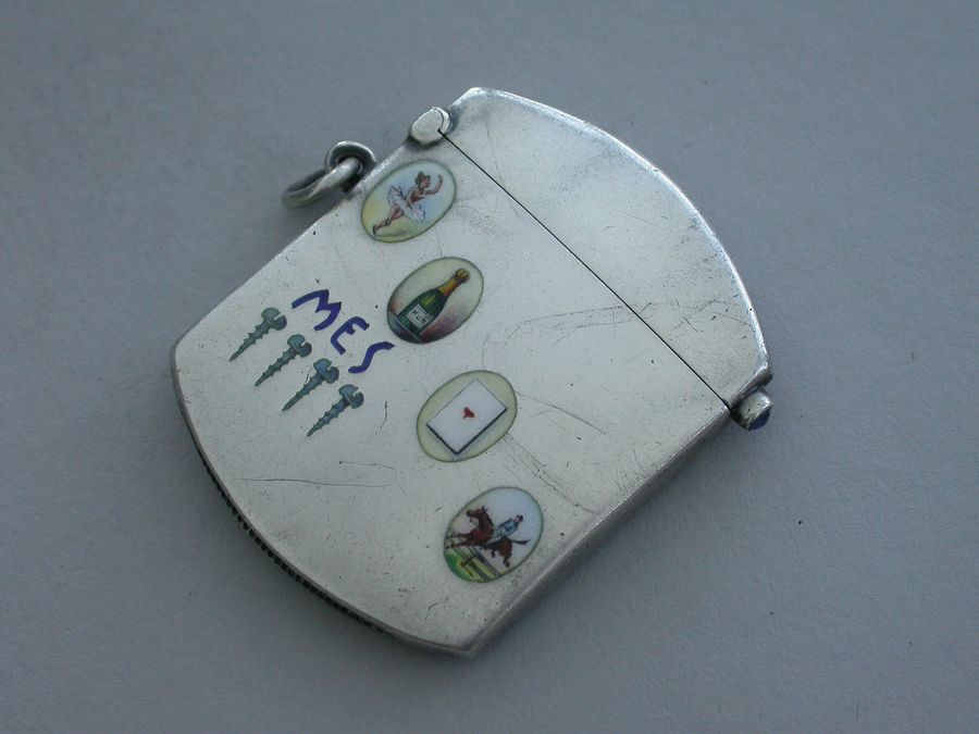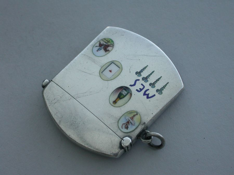 Continental Silver & Enamel Rebus 'Four Vices' Vesta Case