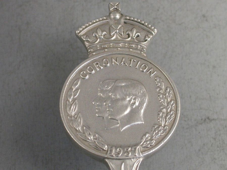 An early 20th century cast silver Caddy Spoon with plain circular bowl and circular medallion to the handle surmounted by a crown, made to commemorate the Coronation of George VI in 1937.