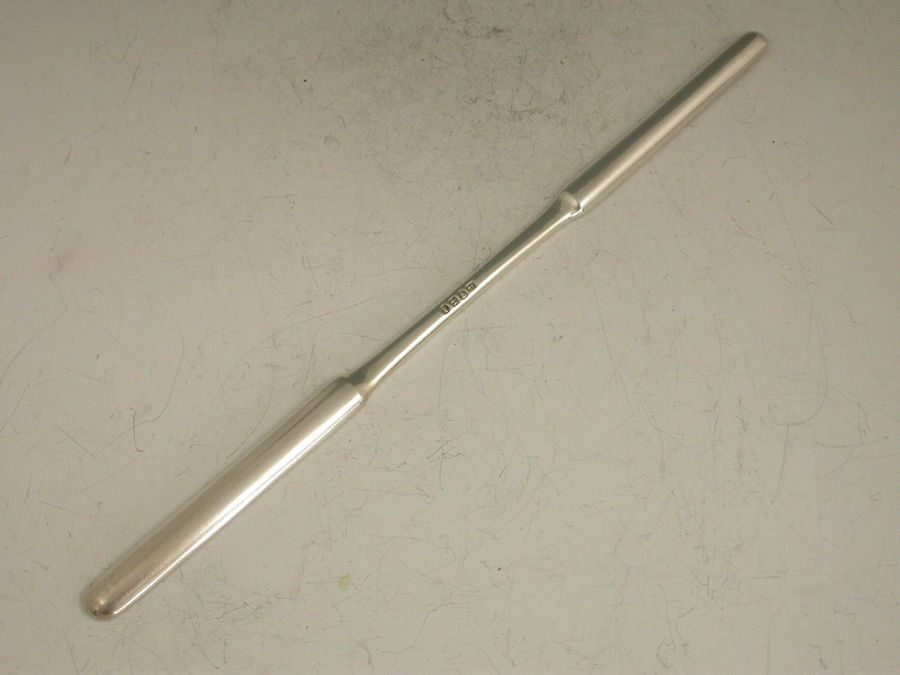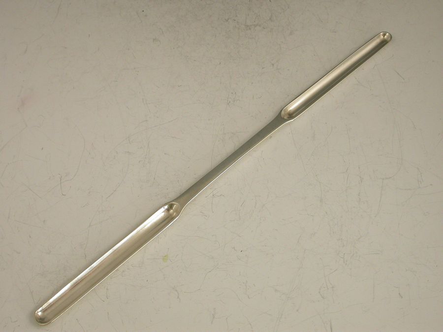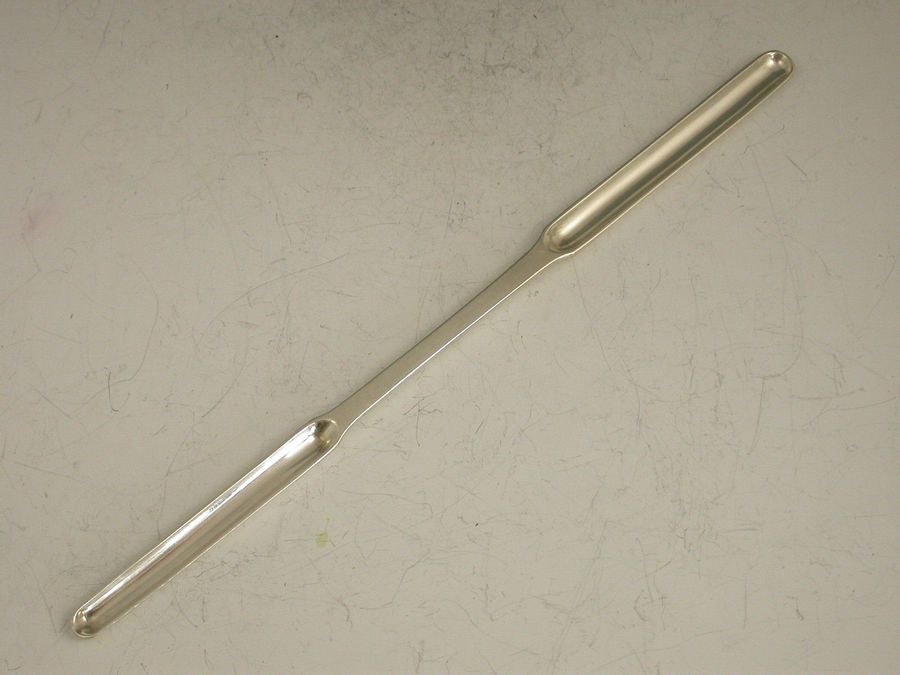 A rare early 19th century Chinese Export silver Marrow Scoop of standard plain form with two narrow bowls.