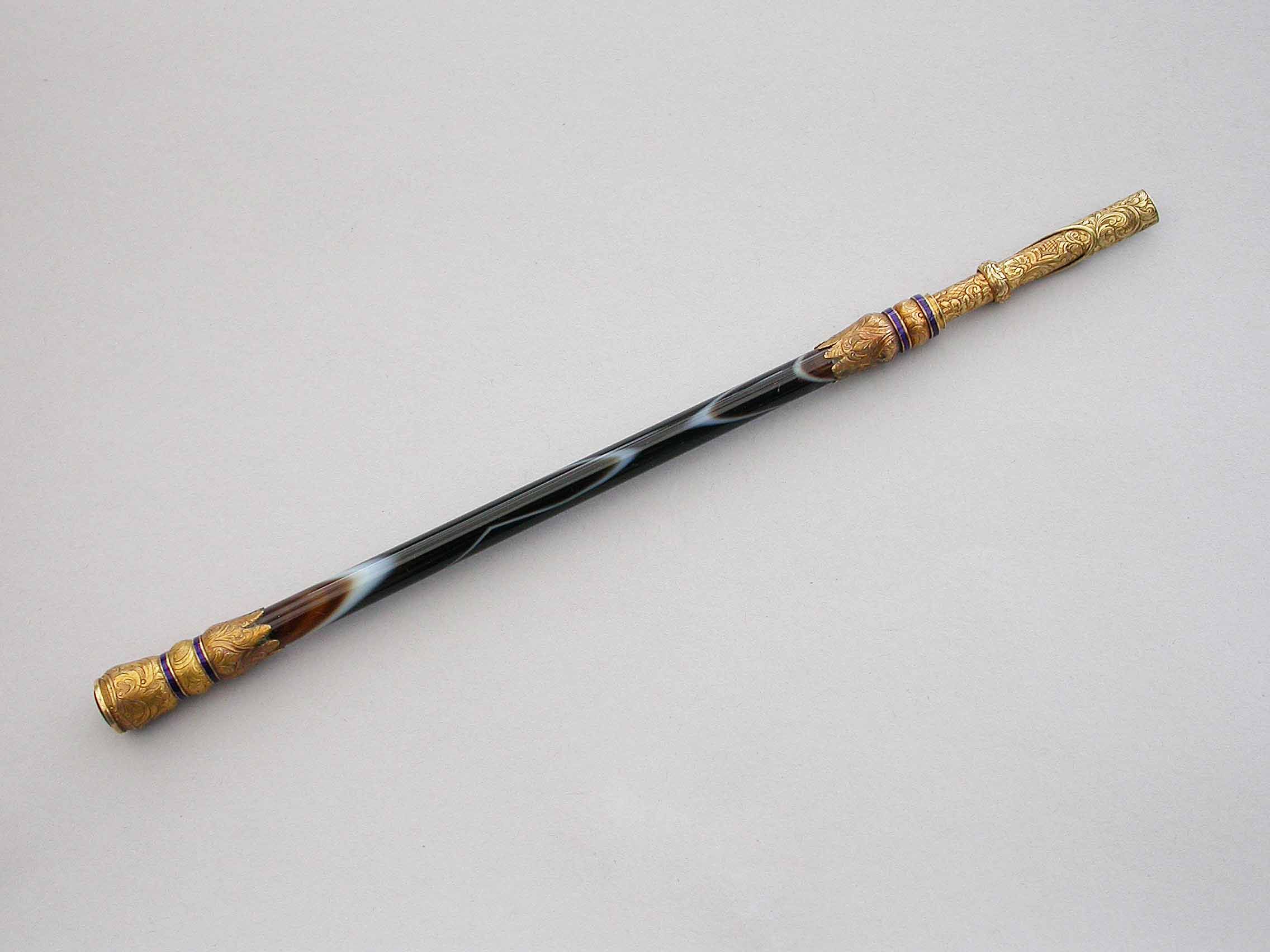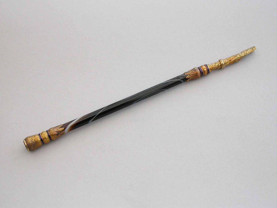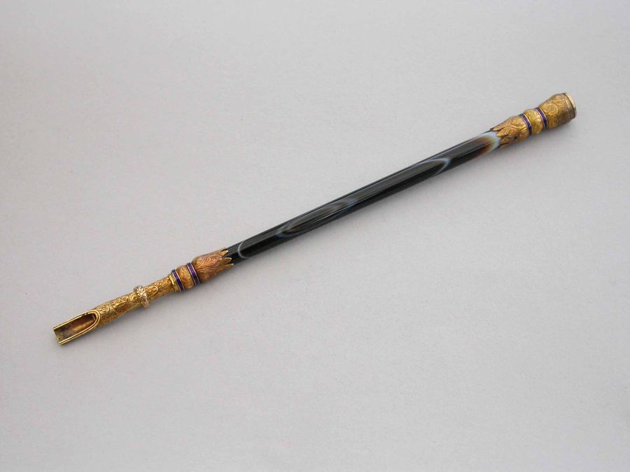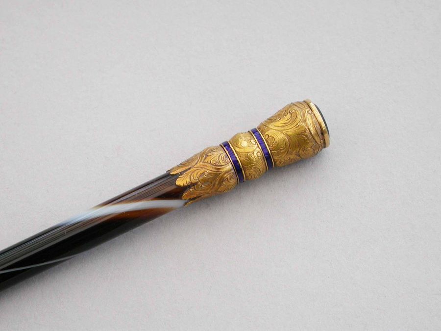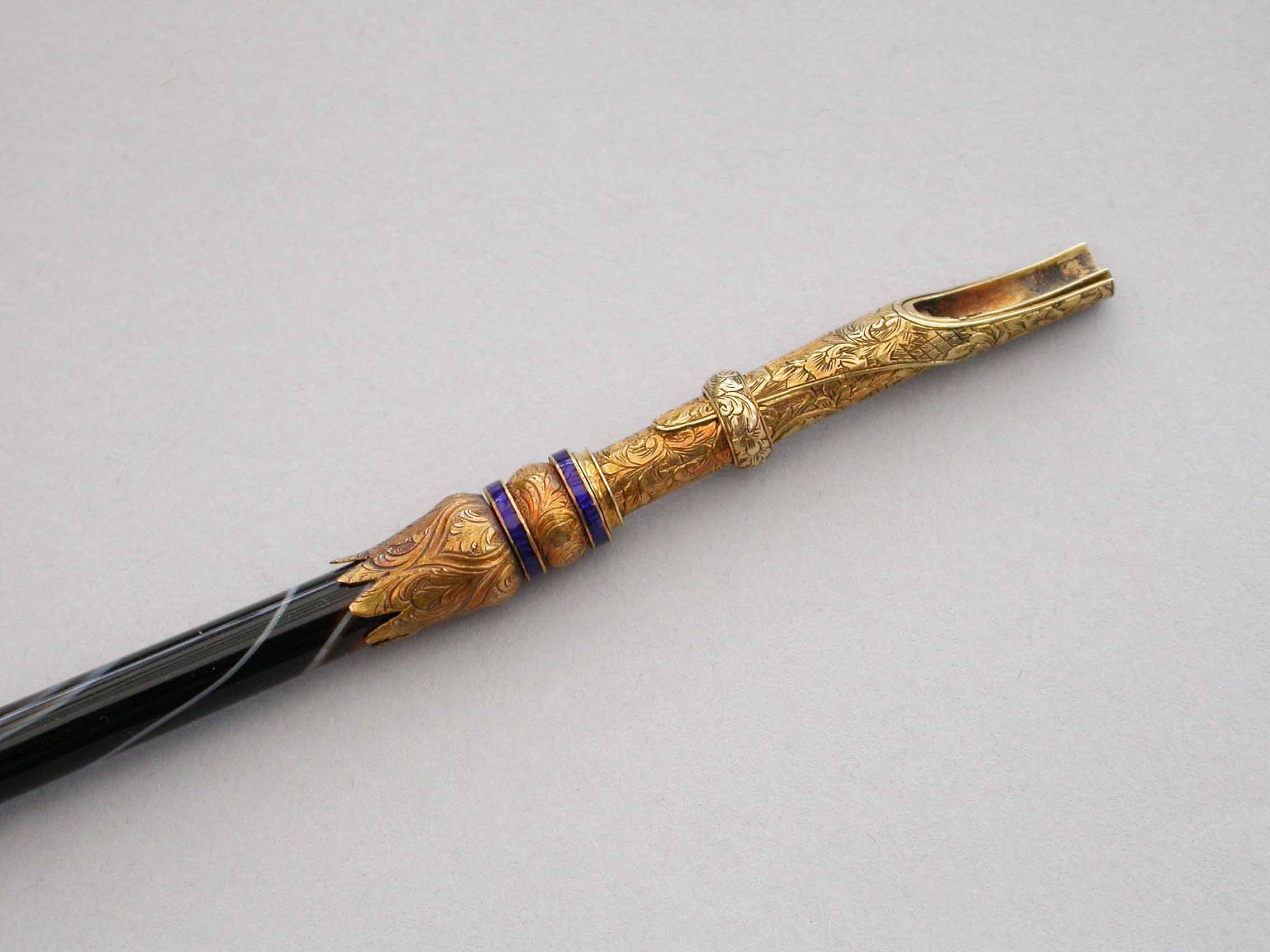 Early 19th Century French Gold Mounted Agate & Enamel Dip Pen